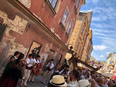 Jarmark Jagielloński to niezwykle barwne wydarzenie, podczas którego Lublin tętni niesamowitą energią pochodzącą od ludzi z wielu krajów Europy. Na wyjątkowe spotkanie z kulturą tradycyjną, muzyką i sztuką ludową w sierpniowy długi weekend w dniach 16 -18 na festiwal zaproszeni zostali artyści, twórcy ludowi i rzemieślnicy z Polski, Ukrainy, Słowacji, Białorusi, Litwy czy Węgier. Zgodnie z ideą wydarzenia nie są to osoby przypadkowe a starannie dobrani, autentyczni twórcy, kontynuujący rodzinne i regionalne tradycje. Tym bardziej udział Kapeli Mała Ziemia Suska, reprezentującej nasz region w festiwalu, był dla muzyków dużym przeżyciem i wielkim wyróżnieniem. Grupa 8 muzyków Małej Ziemi Suskiej wystąpiła na ulicach starego miasta wykonując po kilka koncertów dziennie. W piątek 16 -go, została poproszona o poprowadzenie korowodu z tradycyjną "Kurą festiwalową". Suscy Muzycy nawiązali wiele nowych kontaktów z licznie zebranymi gośćmi festiwalowymi z całej Polski, promując jednocześnie Suchą Beskidzką, a ich występy zostały bardzo dobrze przyjęte, nagrodzone wieloma brawami i pozytywnymi opiniami.