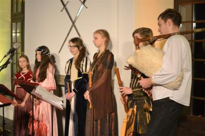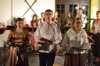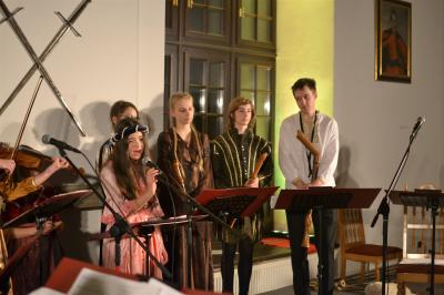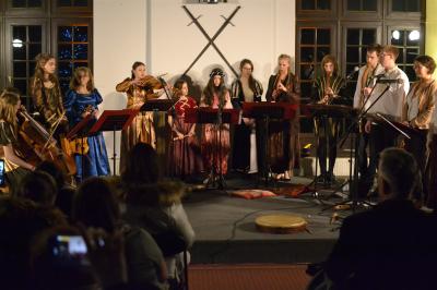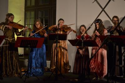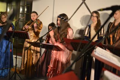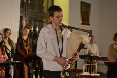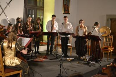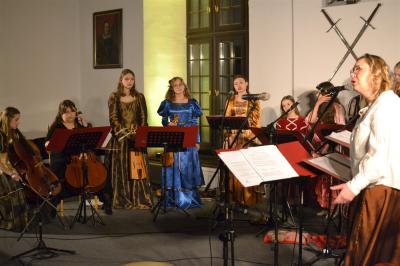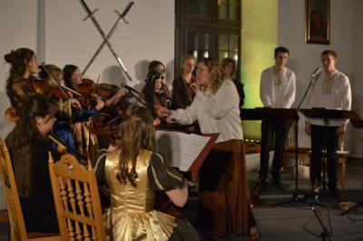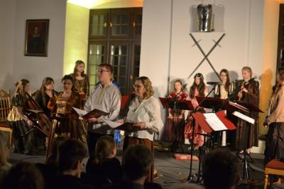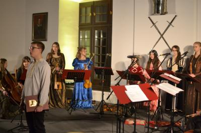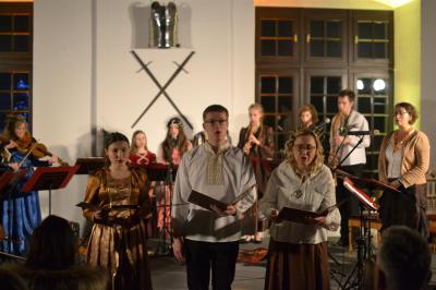 Koncert w Sali Rycerskiej rozpoczął się kolędą „Szczodry wieczór”, która zachowała się we wspomnianym Kancjonale Staniąckim z 1586 roku. Następnie zespół zabrał słuchaczy w dalszą muzyczną podróż, wykonując takie utwory jak „Zdrów bądź królu anielski”, „Bądź wiesioła, Panno czysta”, „Pan Bóg wszechmogący, królujący z wieka”, „Jam jest dudka Jezusa małego” i wiele innych. Występy muzyków wzbogaciły solowe partie wokalne kierownik zespołu Agnieszki Bernackiej, a także Leny Bernackiej, Artura Warty oraz Anny Surmiak, laureatki XV Festiwalu Pieśni Patriotycznej „To Polska - Moja Ojczyzna”. Na zakończenie zespół zaprosił publiczność do wspólnego zaśpiewania znanych przez wszystkich kolęd „Cicha noc”, „Przybieżeli do Betlejem”.