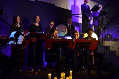 Foyer Centrum Kultury i Filmu stanowi znakomitą przestrzeń do organizacji kameralnych wydarzeń muzycznych. W przedświąteczną środę (27 marca) publiczność wysłuchała w nim bardzo poruszającego, a zarazem zmuszającego do głębokiej refleksji koncertu najstarszych polskich pieśni pasyjnych w wykonaniu Zespołu Muzyki Dawnej im. Gaspara Castiglione wzbogaconego poezją znakomitych polskich poetów.