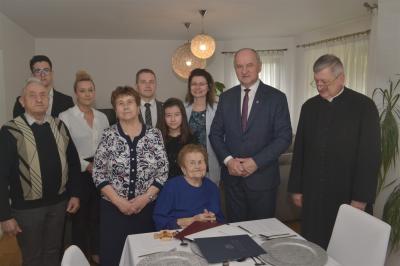 Pani Julia Kumorowicz doczekała się 4 dzieci, 9 wnucząt i 16 prawnucząt. Swój jubileusz spędziła w gronie najbliższych. Kwiaty oraz upominki dostojnej jubilatce wręczyła delegacja suskiego samorządu - Burmistrz Miasta Stanisław Lichosyt, Przewodniczący Rady Miasta Krystian Krzeszowiak oraz kierownik Urzędu Stanu Cywilnego Edyta Pyka, życząc szanownej jubilatce wszelkiej pomyślności i zdrowia. Burmistrz odczytał, a następnie przekazał również listy okolicznościowe przesłane przez Prezesa Rady Ministrów Donalda Tuska i Wojewodę Małopolskiego Krzysztofa Jana Klęczara.