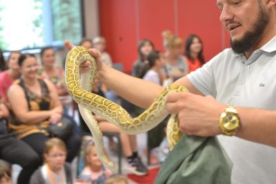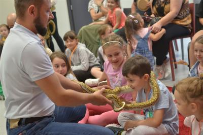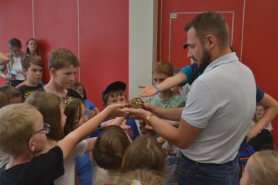 Tegoroczny Dzień Dziecka w CKiF utrzymany był w klimacie egzotyki, a tym samym dzikiej, tajemniczej dżungli. Podczas warsztatów plastycznych dzieci wykonywały maski inspirowane filmem „Garfield” oraz egzotyczne ptaszki. „Balet w świecie zwierząt” był natomiast propozycją dla lubiących taniec, a warsztaty poprowadziła Szkoła Kreacji Ruchu. Dzieci z bardzo dużym zaciekawieniem brały również udział w żywych lekcjach przyrody. W ich trakcie dowiadywały się o cechach biologicznych i zwyczajach dziko żyjących zwierząt, ale i wiele z nich mogło dotknąć, z czego chętnie korzystały. Wszak niecodziennie można mieć na ręce kameleona, żółwia, agamę, a tym bardziej dużych rozmiarów pasikonika, pająka ptasznika czy pytona tygrysiego.