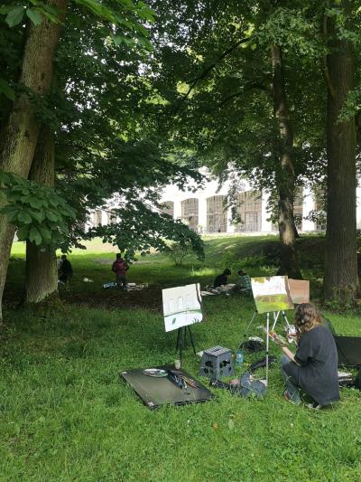 Młodzież z Katowic na plenerze malarskim w Suchej Beskidzkiej