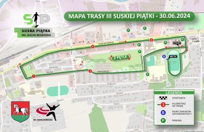 Pomysłodawcą i inicjatorem biegu ulicznego „Suska Piątka”, nad którym patronat każdorazowo obejmował Burmistrz Miasta Sucha Beskidzka Stanisław Lichosyt jest klub SKL Sucha Beskidzka. W tym roku współorganizatorami wydarzenia są Województwo Małopolskie, Powiat Suski, Małopolski Związek Lekkiej Atletyki, Miejskie Centrum Sportu i Rekreacji, a głównym partnerem Woodica. Z uwagi na przyznanie Suskiej Piątce statusu Mistrzostw Małopolski w Biegu Ulicznym na 5 km zmieniona została data zawodów. Zostały przeniesione z września właśnie na 30 czerwca. Nieznacznie, ale jednak, zmodyfikowana została przy tym trasa. Linia startu nie będzie teraz znajdowała się na stadionie, lecz na ciągu pieszo-rowerowym. Natomiast finiszujący biegacze pokonają po bieżni nie tylko jeden łuk, a około 300 metrów. Linia mety zostanie usytuowana przed trybuną główną. Dzięki temu zarówno najlepsi zawodnicy, jak i wszyscy pozostali, będą w ten sposób na ostatnich metrach niesieni żywiołowym dopingiem publiczności, a o ich bezpieczeństwo troszczyć się będą zabezpieczający trasę strażacy z OSP Sucha Beskidzka - Miasto i OSP Sucha Beskidzka - Błądzonka, strażnicy miejscy i policjanci.
