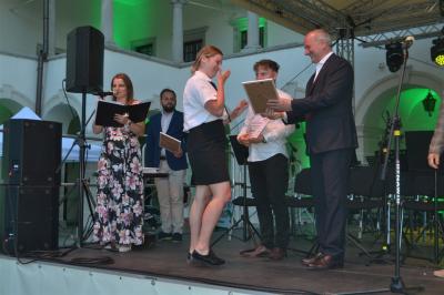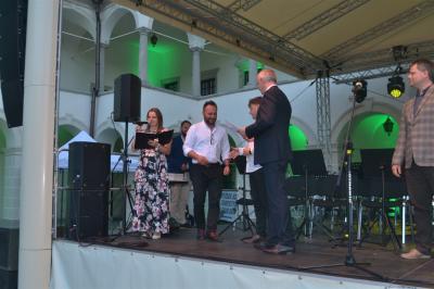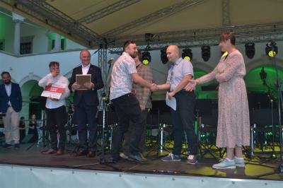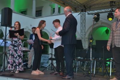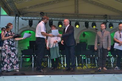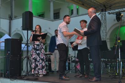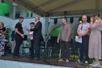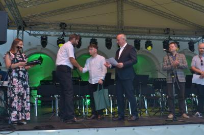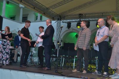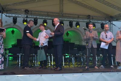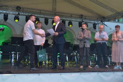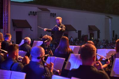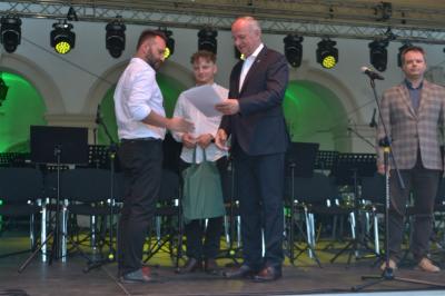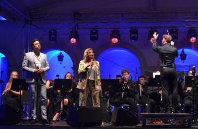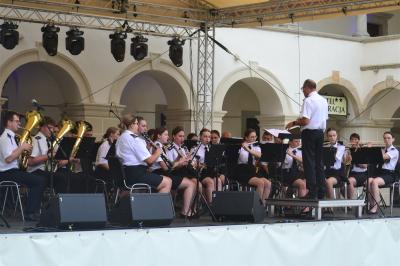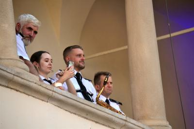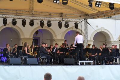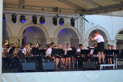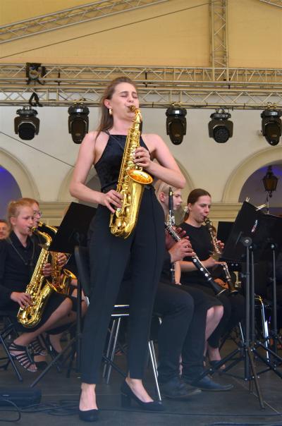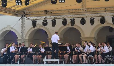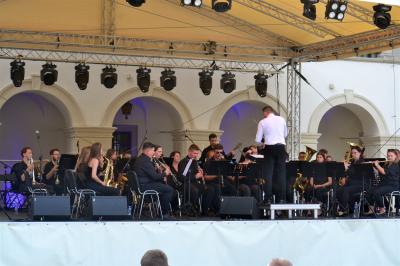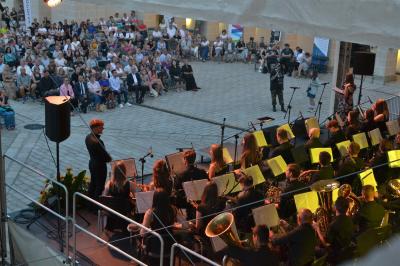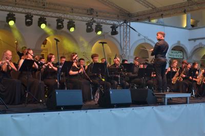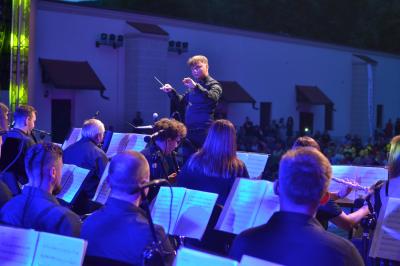Zwieńczeniem drugiego dnia Festiwalu był wieczorny koncert muzyki filmowej w wykonaniu Miejskiej Orkiestry Dętej pod kierownictwem Sławomira Pacholskiego, której towarzyszyli soliści - Karolina Leszko oraz Marcin Jajkiewicz. Bardzo licznie zabrana publiczność usłyszała między innymi tak wielkie przeboje, jak: „Dumka na dwa serca” z filmu „Ogniem i mieczem”, „Wielka miłość” z produkcji „Uprowadzenie Agaty”, ale i światowej sławy hity - „Pretty Woman” czy „Time of my life” z filmu „Dirty dancing”. Orkiestra swój wielki kunszt zaprezentowała również w znakomitej interpretacji muzyki do filmu „Pearl Harbor”, „Walca Barbary” i „Shallow” oraz „Poloneza husarii”, którego wykonała już przed rokiem pod batutą, wybitnego kompozytora i autora tego utworu - Krzesimira Dębskiego, będącego wówczas gościem Festiwalu. W sobotni wieczór publiczność przeniesiona została także do okresu międzywojennego, a to za sprawą „Sex appeal” z filmu „Piętro wyżej”. Wysokiej próby interpretacje bardzo urozmaiconych gatunkowo utworów zostały docenione przez publiczność, która nie tylko nagrodziła artystów gromkimi brawami, ale także „wymogła” na nich wykonanie bisu.