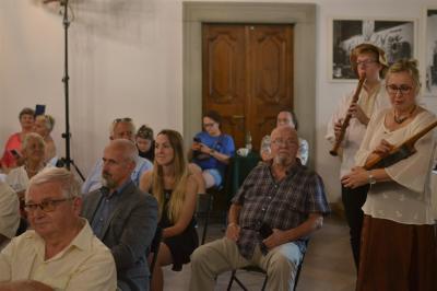 Piątkowy wieczór z szeroko rozumianą sztuką rozpoczął się kuratorskim zwiedzaniem wystawy czasowej, której kuratorkami są: Anna Leksander i Anna Spyrczyńska. Przybyłych oprowadził po niej dyrektor Muzeum Miejskiego Andrzej Peć wraz z zaproszoną przez niego wnuczką poety Ewą Wegenke, która chętnie dzieliła się rodzinnymi wspomnieniami.