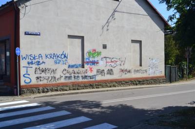 Niestety, od pewnego czasu także Sucha Beskidzka stała się miastem, w którym dochodzi do aktów wandalizmu właśnie polegającym na wykonywaniu graffiti bez zgody właściciela nieruchomości lub obiektu, na którym są robione. Analizując treść umieszczanych napisów łatwo wywnioskować, że stoją za tym osoby związane ze środowiskiem kibicowskim. Szkoda, że autorzy tych wątpliwej jakości dzieł swojej miłości do klubów (są to kibice dwóch drużyn, którzy nie pałają do siebie sympatią) nie wyrażają głośnym dopingiem na stadionach, lecz poprzez szpecenie naszego miasta. Dwa lata temu w ten sposób zniszczono świeżo wyremontowaną kładkę na potoku Stryszawka prowadzącą na Kułasówkę. Bohomazów nie brakuje także na dwóch największych osiedlach mieszkaniowych i ul. Spółdzielców. Regularnie pojawiają się one również na elementach nośnych mostów drogowego i kolejowego na Stryszawce, a gdy tylko zostaną usunięte lub zamalowane, to błyskawicznie powstają nowe. Ostatnio pod osłoną nocy pomalowany został natomiast wraz z fragmentem chodnika świeżo odnowiony słup reklamowy znajdujący się przy przystanku autobusowym na ul. Mickiewicza.