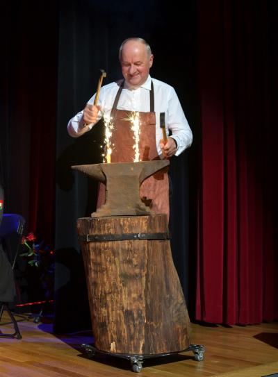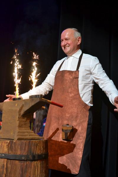 W trakcie pierwszej części jubileuszowego koncertu nie zabrakło niespodzianek. Do grona solistów, którzy wystąpili przed suską publicznością dołączył… burmistrz Stanisław Lichosyt. Mając na sobie skórzany fartuch kowalski brawurowo wykonał partię solową w utworze „Feuerfest Polka” (Polska z kowadłem), grając młotkami na kowadle, które w końcowej partii rozświetliły sztuczne ognie. Gdy wybrzmiały ostatnie takty publiczność nagrodziła występ gromkimi brawami. Następnie nastąpiło prawykonanie kompozycji „Zamek suski”, autorstwa dyrygenta, kompozytora, pedagoga dr. habilitowanego Karola Pyki, będącego latem jurorem podczas II Ogólnopolskiego Konkursu Muzyki Filmowej w Suchej Beskidzkiej. Na zakończenie pierwszej części koncertu jubileuszowego muzycy zaprezentowali się jeszcze w „We are the champions” oraz „Paradzie solistów”. A jak urodziny, to nie mogło podczas nich zabraknąć życzeń złożonych nie tylko przez Burmistrza Miasta Sucha Beskidzka Stanisława Lichosyta, Starosty Suskiego Józefa Bałosa, ale także przedstawicieli innych zespołów muzycznych działających przy Centrum Kultury i Filmu w Suchej Beskidzkiej oraz Orkiestry Dętej „Rytm” z Zembrzyc, a także gromkiego „Sto lat” odśpiewanego przez publiczność, ze sceny przez kierownik Miejskiego Chóru „Jasień” oraz rzecz jasna tortu, na który przybyli zostali zaproszeni do foyer.