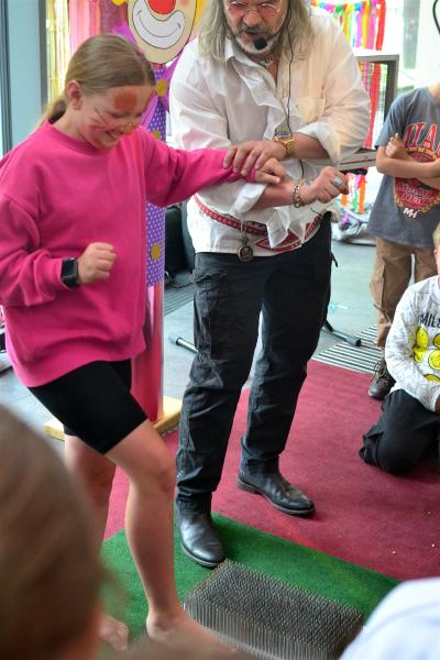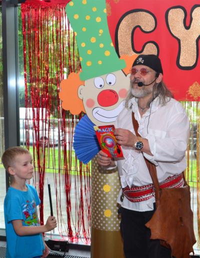 Każde dziecko wie, że cyrk to nie tylko namiot i klauni, ale prawdziwy świat czarów – pełen kolorów, niespodzianek, śmiechu i odrobiny magii. I dokładnie taki zawitał do Suchej Beskidzkiej! Na arenie pojawił się sympatyczny, ale jednak pirat z kolorową, urzekającą pięknem papugą. Zanim jednak rozpoczęła się sesja zdjęciowa z bohaterami widowiska, publiczność – od maluchów po dorosłych – z zapartym tchem śledziła pokaz, w którym dzieci wybrane z widowni stawały się prawdziwymi asystentami iluzjonisty. Dzięki ich energii i czarodziejskiej różdżce działy się rzeczy z pozoru niemożliwe – przedmioty znikały i pojawiały się w mgnieniu oka, zeszyt bez jednej kreski w sekundę zamieniał się w kolorową książeczkę, a zwykła lina nagle stawała się sztywna niczym stalowy pręt. Artysta zaskoczył też pokazem jazdy na monocyklu, spacerem na szczudłach i... demonstracją sztuki fakirskiej, udowadniając, że nawet najbardziej niezwykłe umiejętności mogą być na wyciągnięcie ręki.