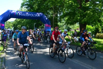 Małopolska Tour to prawdziwe święto rowerowych pasjonatów, dedykowane wszystkim miłośnikom dwóch kółek – zarówno wyczynowym cyklistom, jak i uprawiającym kolarstwo w pełni amatorsko, czyli rekreacyjnie. Aby sprostać ich oczekiwaniom, umiejętnościom technicznym i wytrenowaniu, przygotowano trzy trasy w pełni zabezpieczone przez policjantów oraz strażaków z OSP Sucha Beskidzka – Miasto, OSP Sucha Beskidzka – Błądzonka i gminy Maków Podhalański. Biorący udział w rajdzie całymi rodzinami, niekiedy wioząc swoje pociechy w specjalnych przyczepkach, pokonywali dystans 6 km po trasie wiodącej wokół ścisłego centrum miasta. Bardziej wytrenowani mieli do wyboru trasy o długości 20 i 25 km, na których nie brakowało już stromych podjazdów i zjazdów. Wszyscy wystartowali sprzed położonego u podnóża Jasienia renesansowego Zamku Suskiego i przy nim również finiszowali, przejeżdżając wcześniej przez odrestaurowany niedawno przez samorząd miasta rynek. Sygnał do startu każdej z barwnych grup dali zamaszystym machnięciem flagami Burmistrz Miasta Sucha Beskidzka Stanisław Lichosyt wraz z członkiem Zarządu Województwa Małopolskiego Iwoną Gibas oraz przewodniczącą Komisji Edukacji, Kultury Fizycznej, Sportu i Turystyki Sejmiku Województwa Małopolskiego Danutą Kawą.