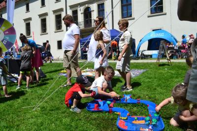 W rowerowym miasteczku, jakie powstało w scenerii Zamku Suskiego, można było nie tylko odpocząć, ale również atrakcyjnie spędzić dalszą część popołudnia. Na wszystkich czekały gry i zabawy z animatorami, konkursy sprawnościowe oraz testy pozwalające sprawdzić refleks, warsztaty artystyczne, strefa serwisowa, food trucki, a swoje wyroby prezentowali twórcy ludowi i inni partnerzy wydarzenia. Natomiast na zamkowym dziedzińcu warto było odwiedzić akademię rowerową oraz obejrzeć ekwilibrystyczne pokazy. Przeprowadzono również konkurs z cennymi nagrodami, którego uczestnicy musieli wykazać się wiedzą kolarską oraz o atrakcjach turystycznych Małopolski mocno związanych z aktywnym wypoczynkiem. Laureatom nagrody uroczyście wręczyli Stanisław Lichosyt, Iwona Gibas oraz Danuta Kawa.