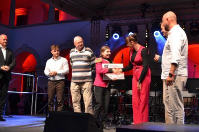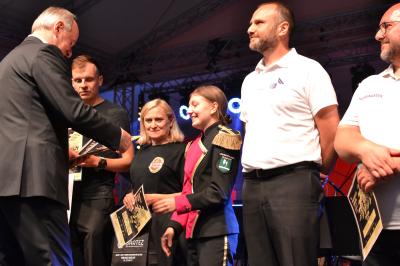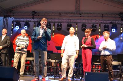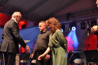 Wśród gości Festiwalu była delegacja z partnerskiego Fromborka z Burmistrzem Miasta i Gminy Frombork Damianem Krasińskim na czele. W jej składzie była również Członkini Zarządu Powiatu Braniewskiego Krystyna Lewańska, która przed 20 laty będąc wówczas Burmistrzem Fromborka nawiązała relacje z naszym miastem.