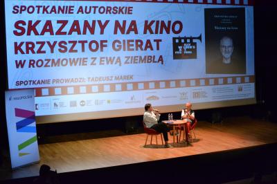 Festiwal zainaugurowano w piątkowe późne popołudnie w sali widowiskowej CKiF, spotkaniem autorskim z Krzysztofem Gieratem, będącym od 25 lat dyrektorem Krakowskiego Festiwalu Filmowego, bardzo mocno związanym z naszym miastem. Gość specjalny Festiwalu, w rozmowie z Tadeuszem Markiem - redaktorem Radia Kraków, opowiedział o swojej najnowszej książce „Skazany na kino. Krzysztof Gierat w rozmowie z Ewą Ziemblą”. Podczas niej nie mogło zabraknąć wspomnień z dzieciństwa, które Krzysztof Gierat spędził w Suchej Beskidzkiej, oraz licznych ciekawostek i anegdot związanych z Krakowskim Festiwalem Filmowym i jego kulisami.
