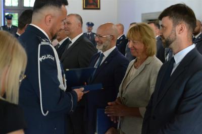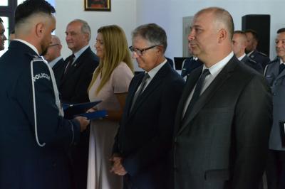 I Zastępca Komendanta Wojewódzkiego Policji w Krakowie inspektor Maciej Kubiak oraz Zastępca Komendanta Wojewódzkiego Policji w Lublinie Robert Michna również dziękowali funkcjonariuszom oraz pracownikom cywilnym za codzienną, ciężką pracę. W imieniu własnym oraz wszystkich samorządowców Starosta Suski Józef Bałos pogratulował funkcjonariuszom awansów, a także podziękował za podejmowane przez nich działania na rzecz bezpieczeństwa publicznego, życząc dalszych sukcesów w pracy zawodowej oraz szczęścia w życiu osobistym.