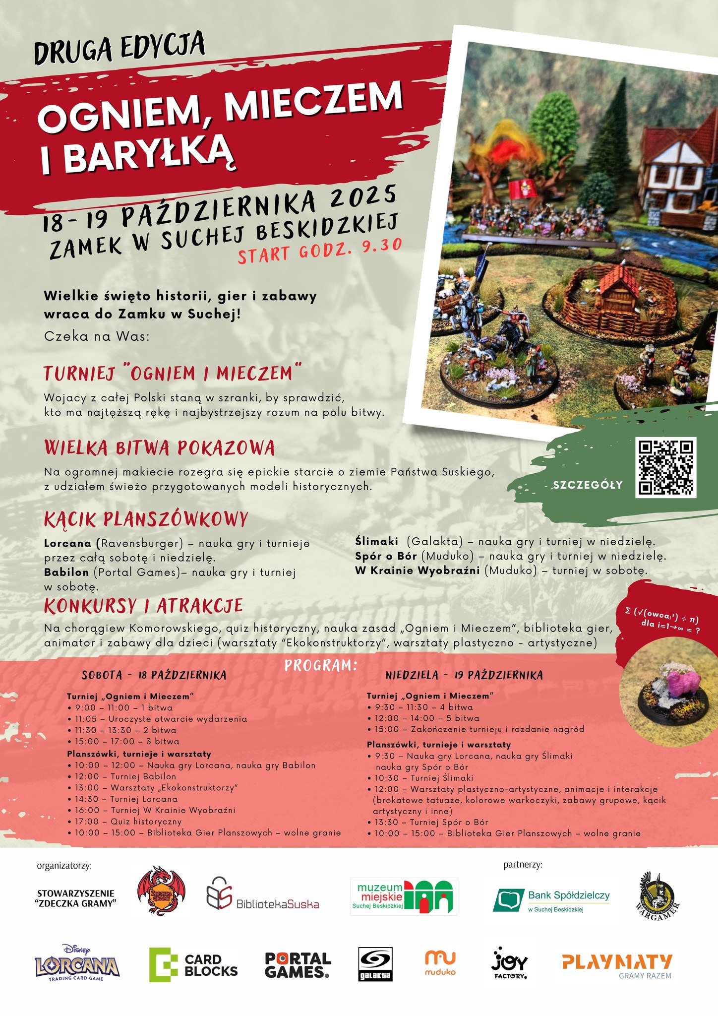 Na uczestników czekać będzie wiele atrakcji. Głównym punktem wydarzenia będzie turniej gry bitewnej „Ogniem i Mieczem”, podczas którego zawodnicy z całej Polski staną w szranki, by sprawdzić swoje umiejętności strategiczne. Niezwykłym widowiskiem zapowiada się także wielka bitwa pokazowa, która rozegra się na ogromnej makiecie, przedstawiając epickie starcie o ziemie Państwa Suskiego.
