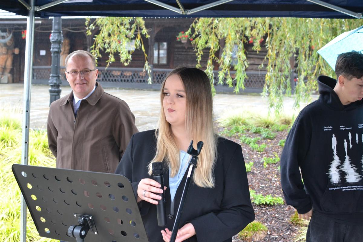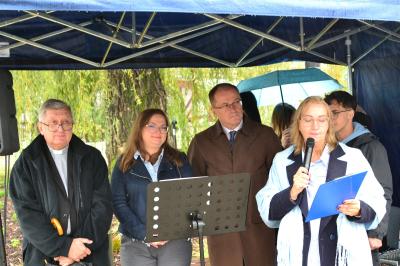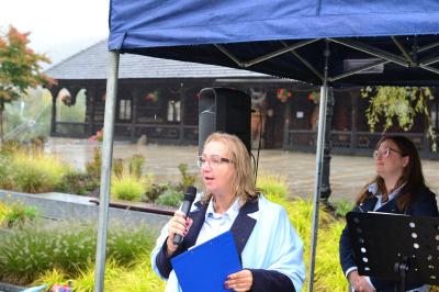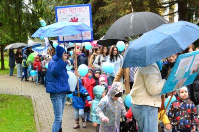 Uczestników marszu na rynku, w imieniu Burmistrza Miasta, przywitali Sekretarz Gminy Zbigniew Maryon oraz Przewodnicząca Zespołu Interdyscyplinarnego Joanna Stokłosa. Podziękowali wszystkim, którzy zaangażowali się w tak ważną inicjatywę. Kierownik Miejskiego Ośrodka Pomocy Społecznej Joanna Wilgierz jeszcze raz przypomniała, jaką postać może przybrać przemoc. Głos zabrał również proboszcz suskiej parafii ks. Wiesław Popielarczyk, podkreślając, że przemoc jest nie tylko czynem zabronionym, ale zarazem grzechem. Po krótkim występie wokalnym, nawiązującym do wydarzenia, nastąpiło symboliczne wypuszczenie do nieba niebieskich balonów.