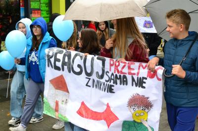 Biorący udział w marszu nieśli ze sobą niebieskie balony – symbol solidarności z osobami doświadczającymi przemocy – oraz własnoręcznie wykonane transparenty, które w prostych, ale mocnych hasłach ukazywały różne jej formy i apelowały o reagowanie oraz przerwanie łańcucha milczenia. Cały czas wznoszono głośne okrzyki sprzeciwu wobec przemocy. W ramach kampanii uczniowie lokalnych szkół przygotowali poruszające prace plastyczne, zaprezentowane na wystawie przy Centrum Kultury i Filmu w Suchej Beskidzkiej. Część z nich posłużyła do stworzenia ulotki informacyjnej, którą wolontariusze rozdawali mieszkańcom podczas przemarszu, zachęcając do reagowania i wspierania osób krzywdzonych.