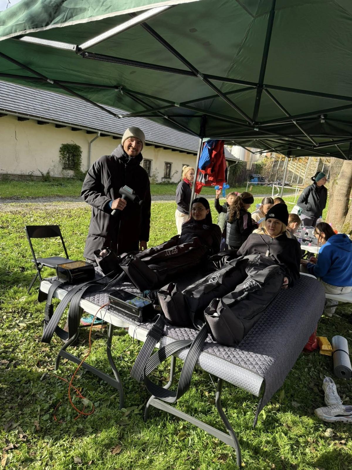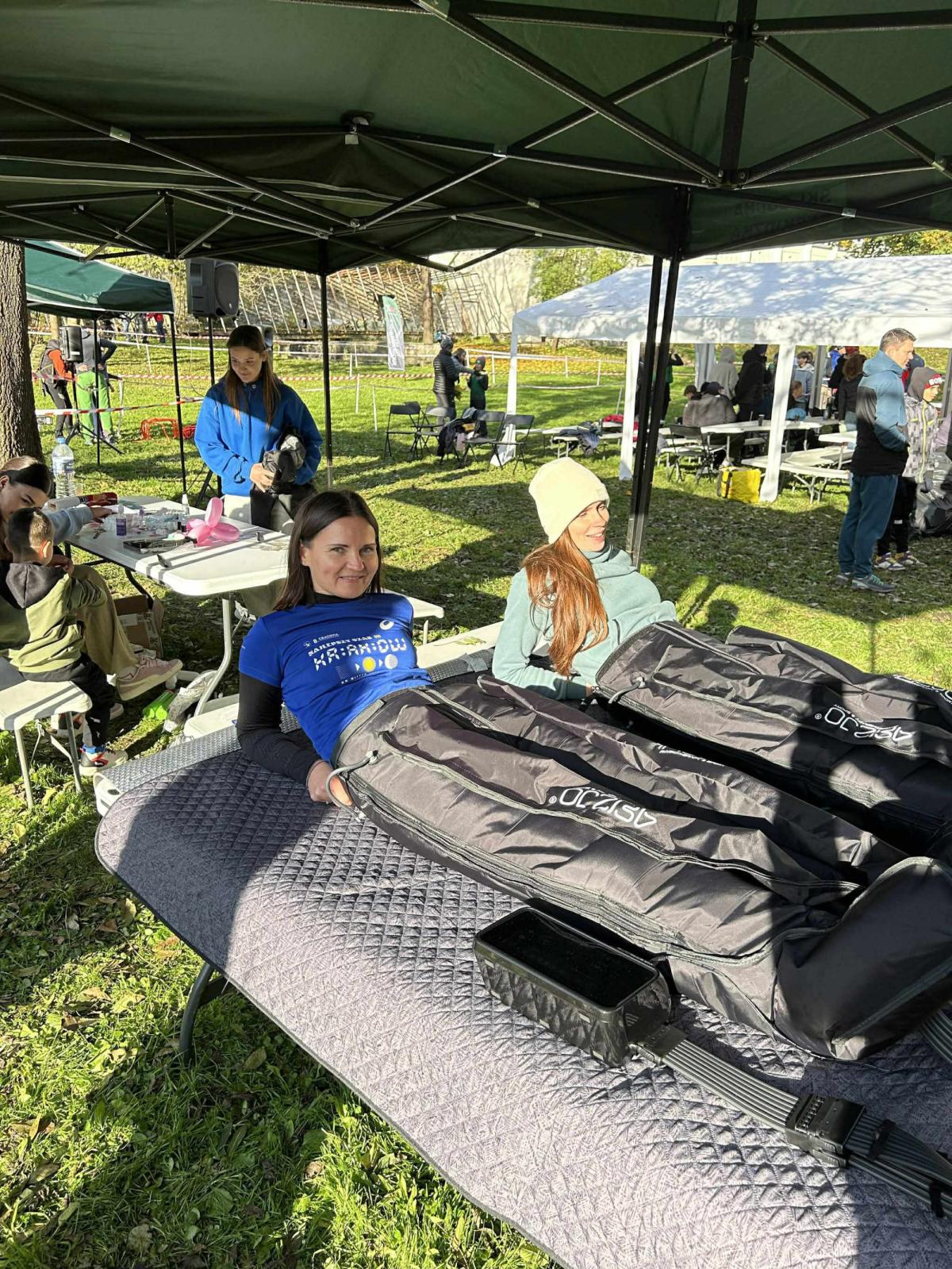 Po powrocie do parku na wszystkich czekał zasłużony odpoczynek i moc atrakcji. Organizatorzy zadbali o każdy aspekt wydarzenia, oferując coś dla ciała i ducha. Uczestnicy mogli rozgrzać się ciepłym poczęstunkiem serwowanym przez catering „Pełna Chata”. Dużym zainteresowaniem cieszył się pokaz ratownictwa medycznego, a także prezentacja nowoczesnych urządzeń wspierających regenerację, takich jak spodnie do drenażu limfatycznego czy pistolety do masażu.
