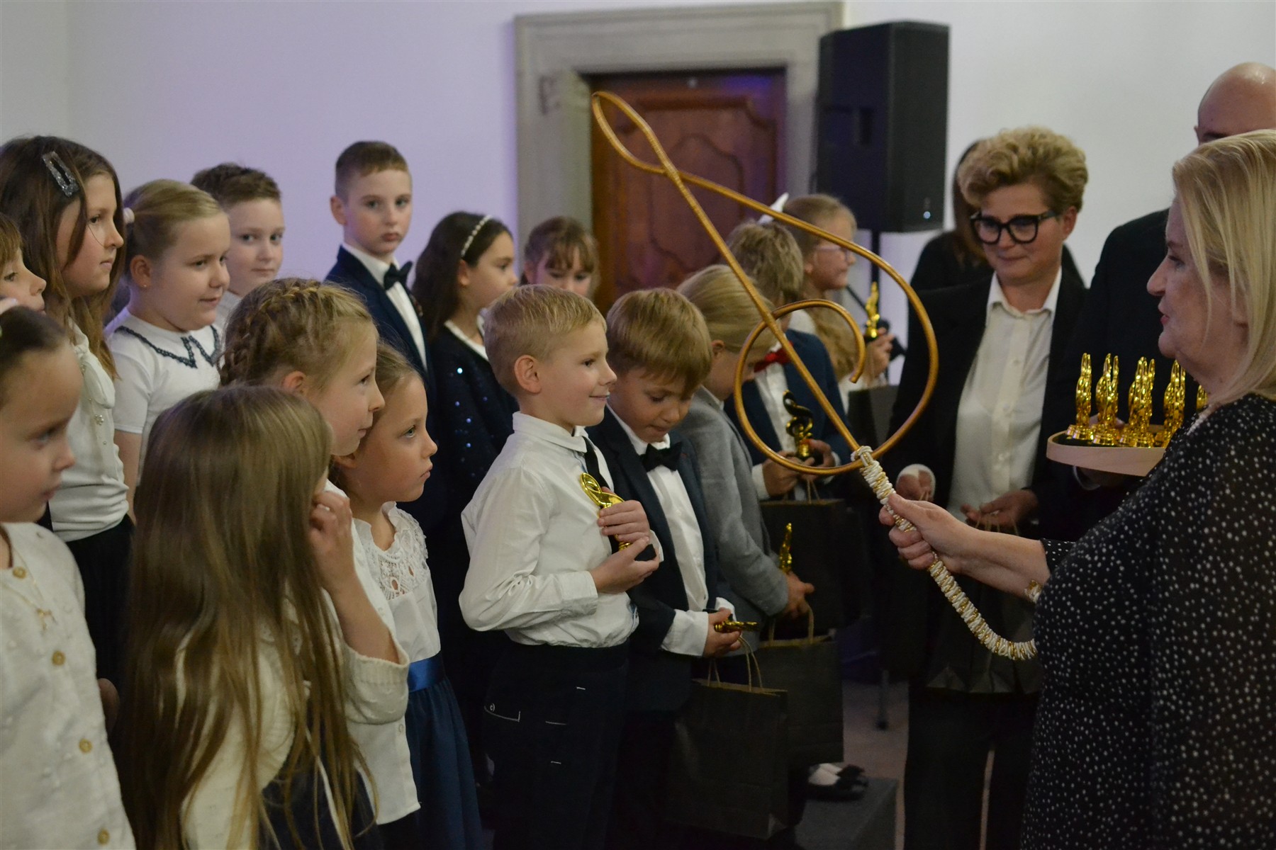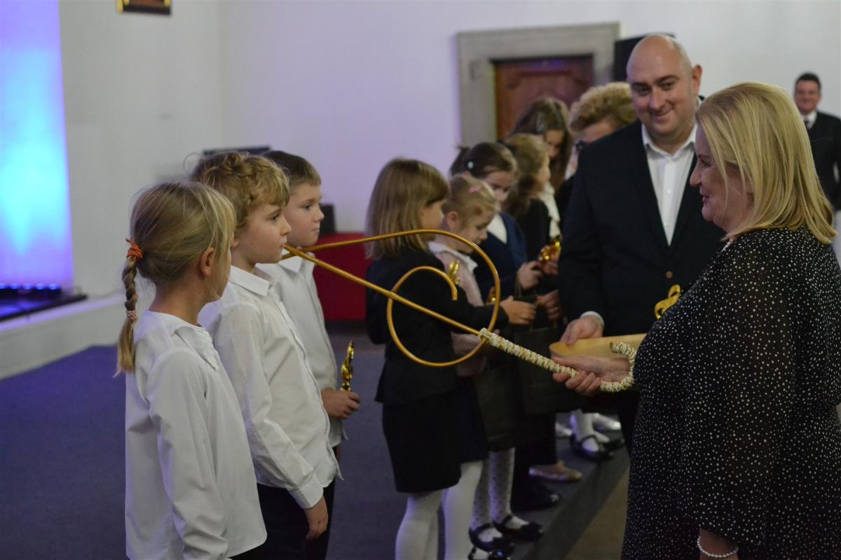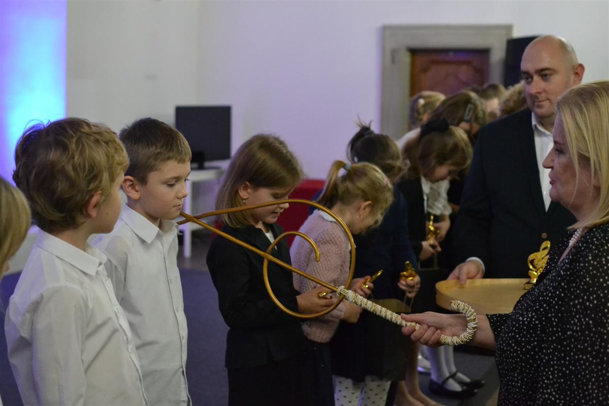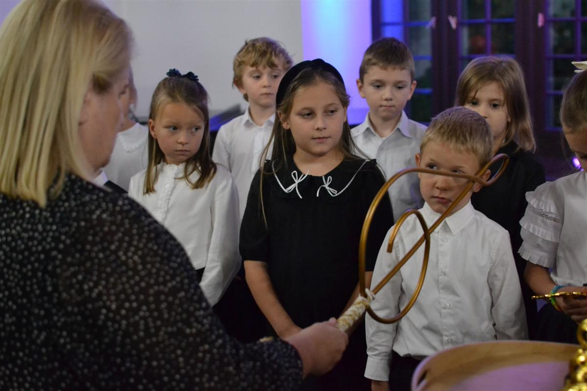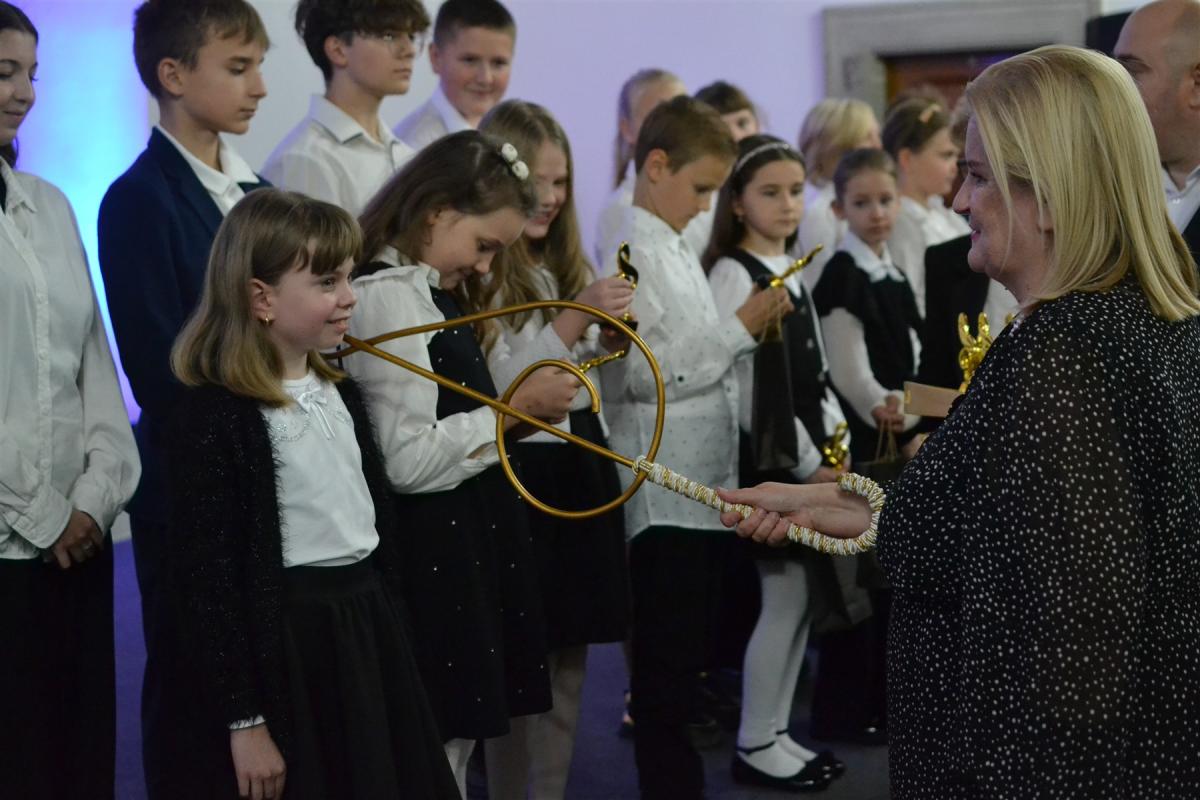 We wrześniu naukę w suskiej Szkole Muzycznej I stopnia rozpoczęło kolejne grono młodych, utalentowanych muzycznie uczniów. W poniedziałkowe popołudnie, w podniosłej atmosferze, dzieci z przejęciem stanęły na scenie, by złożyć ślubowanie, którego treść odczytała dyrektor szkoły Renata Trybała. Następnie, trzymając w dłoniach symboliczny klucz wiolinowy, dyrektor pasowała każdego z nich na ucznia. Na pamiątkę tego wyjątkowego momentu, dzieci otrzymały statuetki z kluczem wiolinowym – symbolem początku muzycznej drogi. Tak jak klucz otwiera każdą pięciolinię, tak oni otwierają nowy rozdział swojej edukacji – pełen dźwięków, pasji i odkrywania świata muzyki.