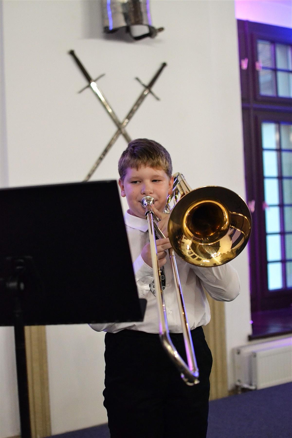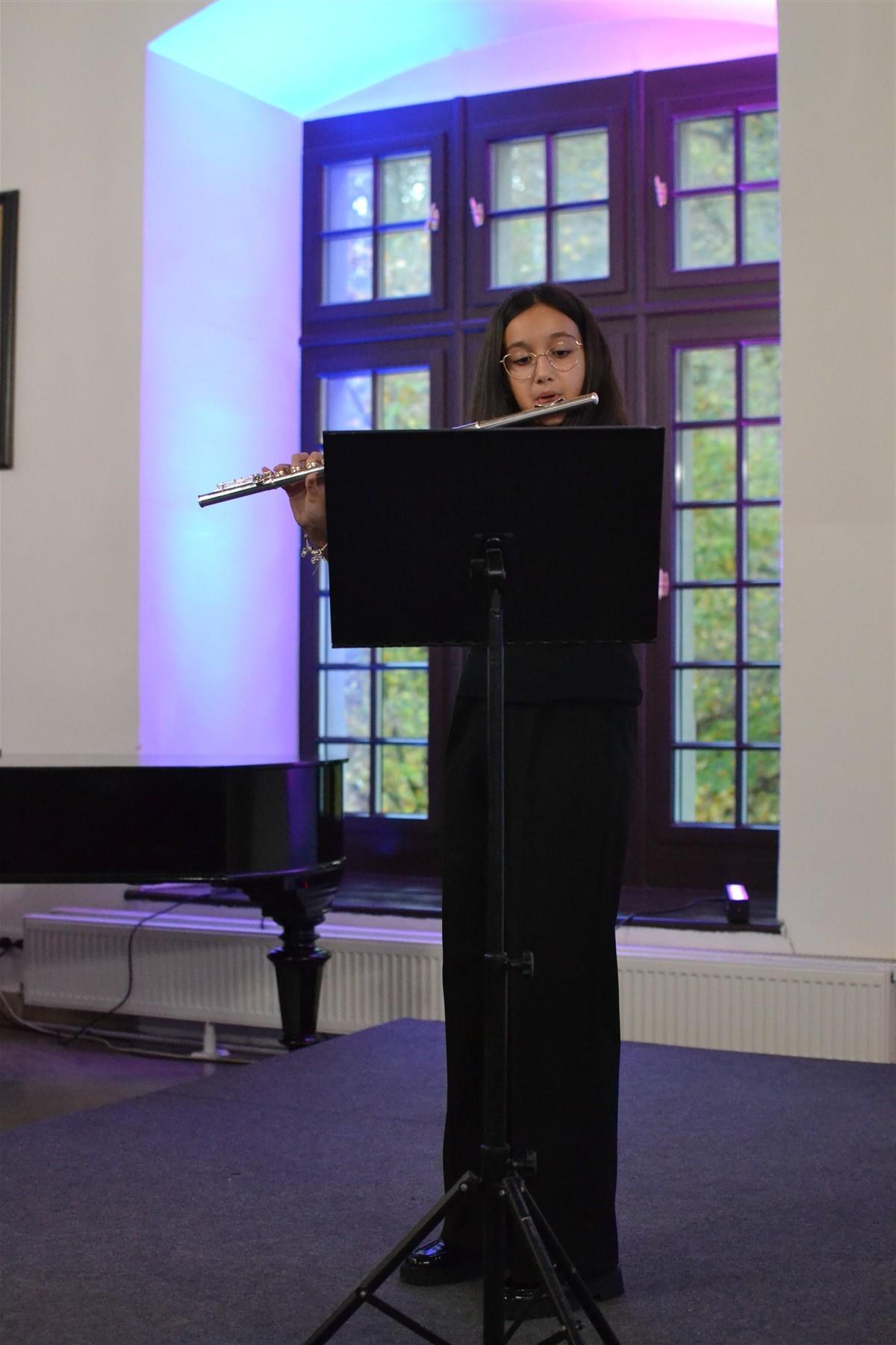 Muzyczną oprawę wydarzenia zapewnili uczniowie szkoły, którzy przed ceremonią ślubowania zaprezentowali krótki, ale niezwykle nastrojowy koncert, wprowadzając wszystkich w wyjątkowy klimat uroczystości. Otworzyła go skrzypaczka Hanna Danielewicz utworem „Perpetuo mobile”, a następnie serca publiczności skradli: fortepianistka Iveta Makoś, która sięgnęła po walca a-moll Fryderyka Chopina, flecistka Julia Mesina, wykonując „Taniec węgierski”, oraz saksofoniści Anastazja Mirocha i Konrad Kurek, prezentując walca z suity jazzowej. W zupełnie odmienne muzyczne klimaty zabrali publiczność kolejni młodzi artyści – akordeonista Henryk Lichosyt, który przeniósł słuchaczy na Hawaje, wykonując „Aloha ‘Oe” oraz puzonista Oliwier Bańdura, prezentując wariację „Carnival of Venice”. Na zakończenie niespodziankę rodzicom i zaproszonym gościom sprawili wszyscy pierwszoklasiści. Uczniowie cyklu sześcioletniego pod kierunkiem Natalii Janikowskiej zaśpiewali utwór „Skaczące nutki”, natomiast uczniowie cyklu czteroletniego, przygotowani przez Klaudię Jancarz, zaprezentowali piosenkę „Szkoła muzyczna”.