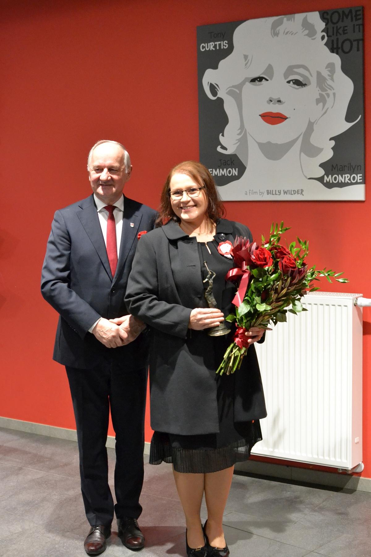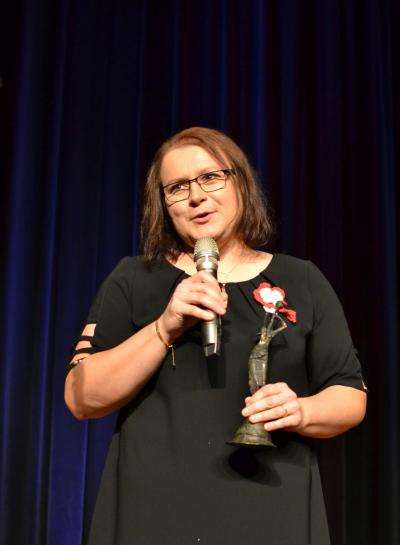 Podczas uroczystości, która odbyła się 11 listopada 2025 roku w Centrum Kultury i Filmu, Pani Małgorzata Kubieniec odebrała z rąk Burmistrza Stanisława Lichosyta oraz Przewodniczącego Rady Miasta Krystiana Krzeszowiaka wyjątkowe wyróżnienie – statuetkę „Kamena”. Wręczenie odbyło się w trakcie XVII Koncertu Laureatów Konkursu „To Polska – Moja Ojczyzna”, który co roku gromadzi mieszkańców, artystów i przyjaciół kultury, łącząc w sobie duch patriotyzmu z radością ze wspólnego świętowania dokonań artystycznych. „Kamena” to nie tylko statuetka, lecz także symbol uznania i wdzięczności. Wyróżnienie przyznawane jest przez Burmistrza Miasta, a ustanowione zostało w 2011 roku uchwałą Rady Miejskiej w Suchej Beskidzkiej. Może być ono przyznane osobom, zespołom, instytucjom i stowarzyszeniom, których działalność w sposób znaczący przyczynia się do rozwoju twórczości artystycznej i upowszechniania kultury w Suchej Beskidzkiej. Sama statuetka „Kamena” ma wyjątkową formę i symbolikę. Przedstawia stojącą w tanecznym ruchu postać kobiety, trzymającą w dłoniach flet, okrytą zwiewnym woalem. Całość umieszczona jest na czaszy dzwonka. Kształt i nazwa statuetki nie są przypadkowe – wywodzi się od łacińskiego słowa camenæ, oznaczającego muzy – patronki poezji i sztuki – co symbolicznie podkreśla duchowe i twórcze znaczenie tego tytułu. Kameny mają swoje korzenie w tradycji polskiej i europejskiej kultury.