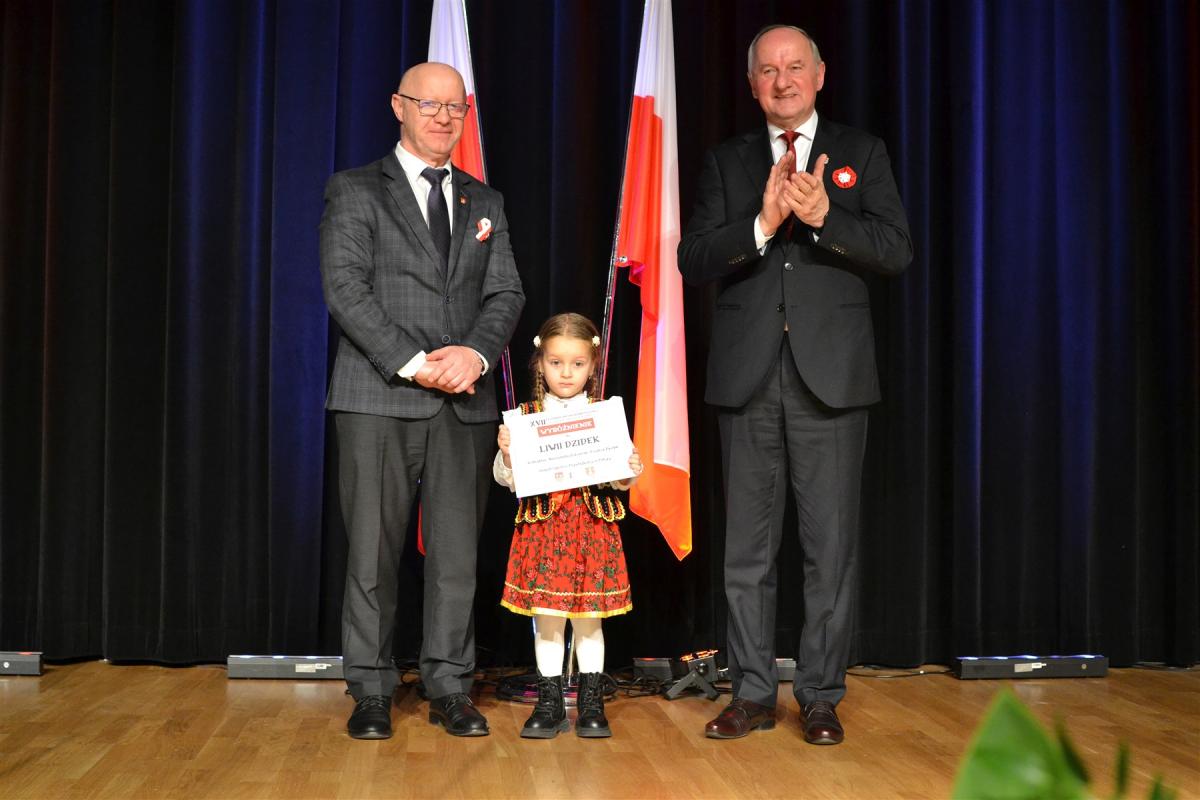 Koncert otworzyła kierownik Miejskiego Chóru „Jasień” Małgorzata Kubieniec, prezentując w pełnym emocji, solowym wykonaniu utwór „Póki Polska żyje w nas” do muzyki Włodzimierza Korcza i słów Wojciecha Kejne. Chwilę później, nie kryjąc wzruszenia, artystka odebrała z rąk Burmistrza Miasta Stanisława Lichosyta Kamenę – nagrodę przyznawaną za wybitne osiągnięcia w dziedzinie twórczości artystycznej i upowszechniania kultury. Owacja, jaką otrzymała od nadkompletu publiczności po odczytaniu przez burmistrza laudacji, była dowodem uznania i wdzięczności za jej wieloletnią działalność na rzecz życia kulturalnego Suchej Beskidzkiej i regionu.