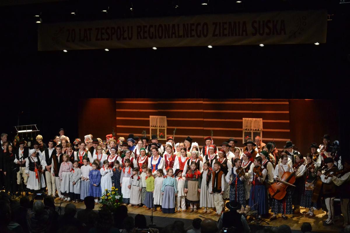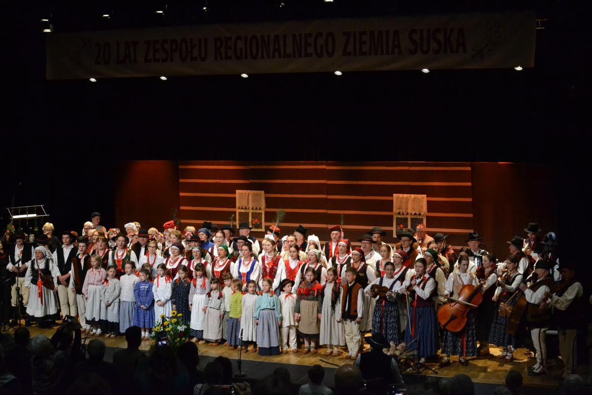 W sobotę, 15 listopada sala widowiskowa Centrum Kultury i Filmu w Suchej Beskidzkiej wypełniła się po brzegi miłośnikami folkloru z burmistrzem miasta Stanisławem Lichosytem na czele, którzy przyjęli otwarte zaproszenie na jubileusz 20-lecia Zespołu Regionalnego „Ziemia Suska”. Uroczystość stała się nie tylko świętem zespołu, ale też sentymentalną podróżą przez dwie dekady działalności grupy, która z oddaniem pielęgnuje tradycje Górali Babiogórskich.