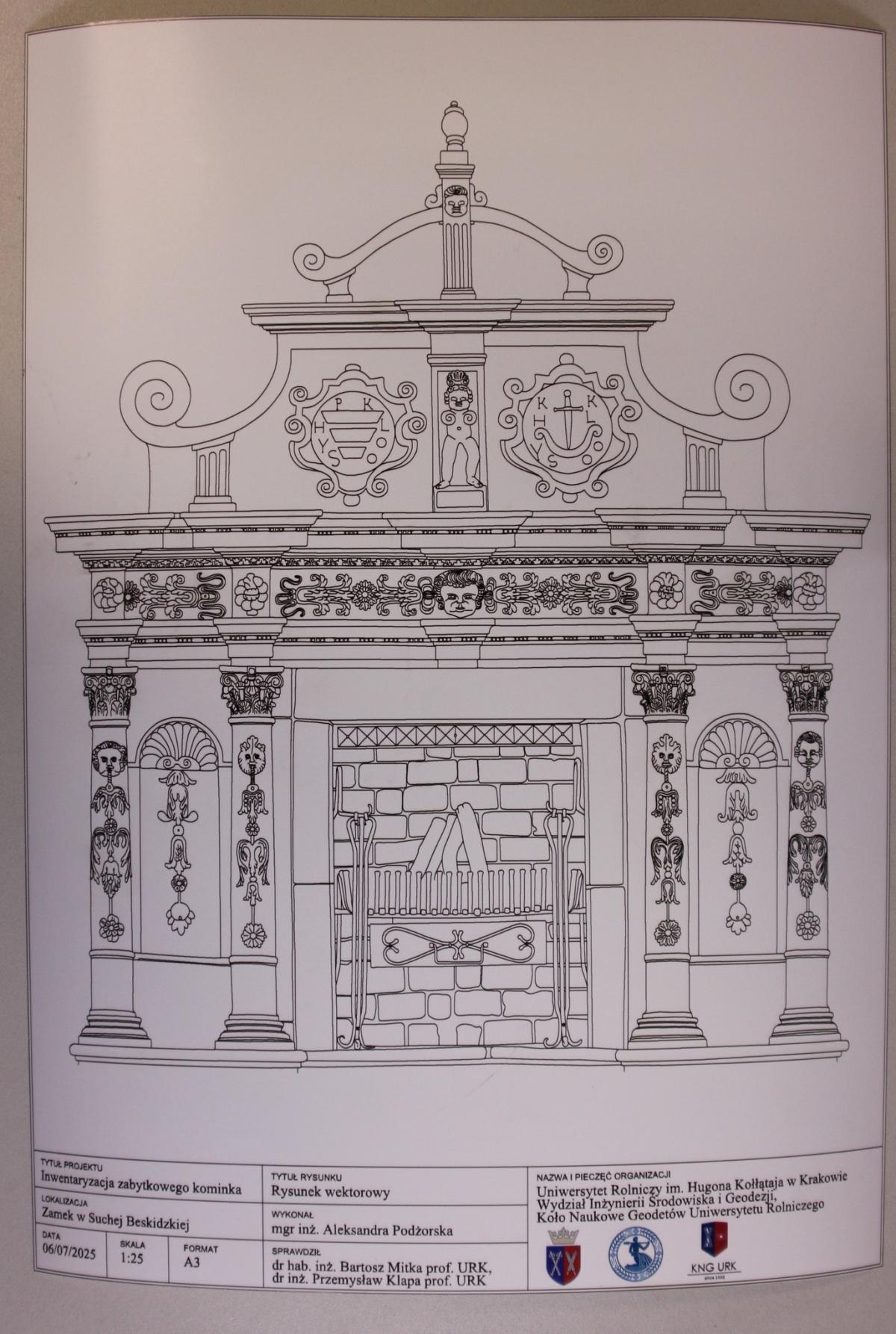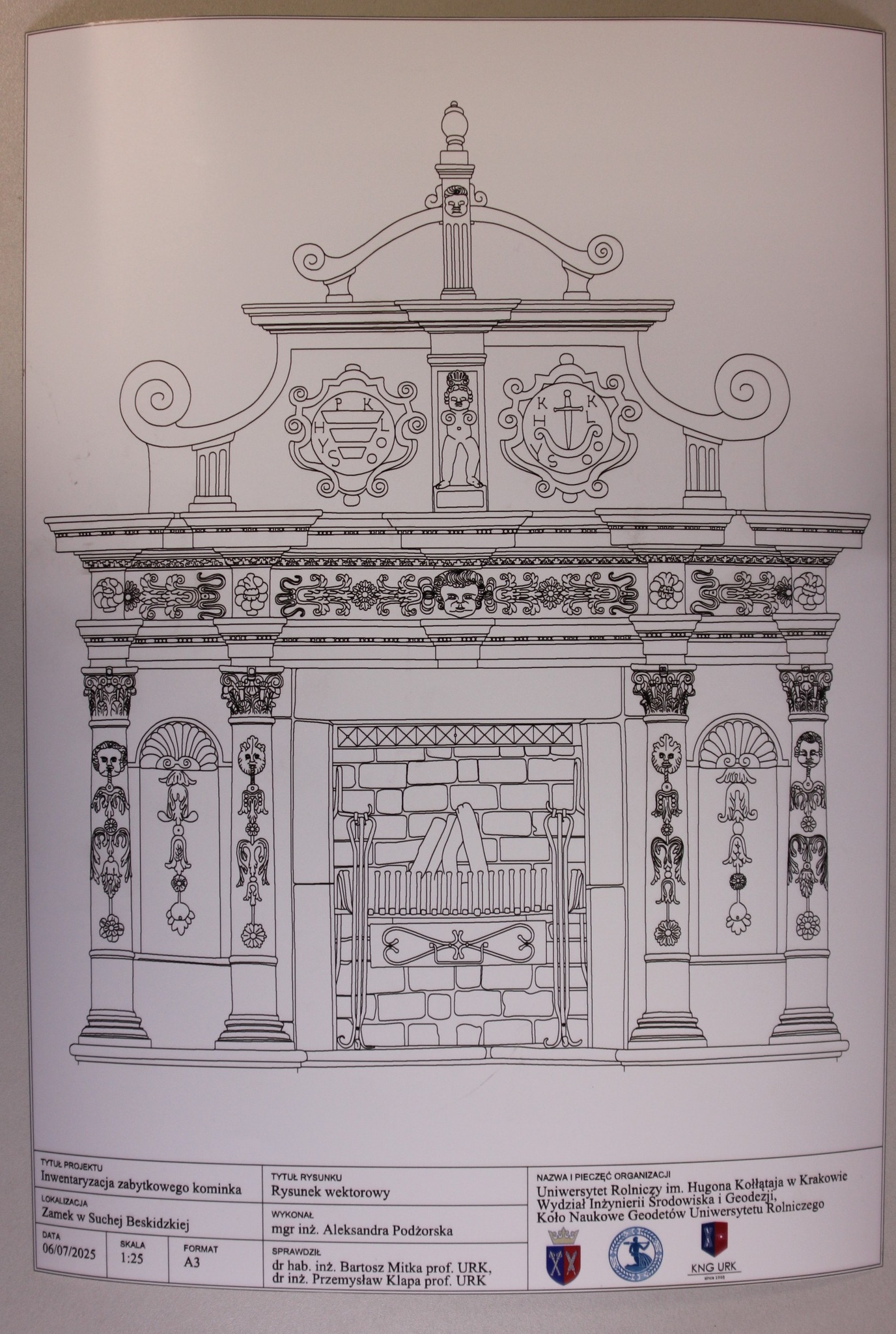 Podczas spotkania opiekun Koła, dr inż. Przemysław Klapa, prof. URK, oraz przedstawiciel studentów – inż. Mateusz Zagórowski – przekazali na ręce dyrektora Muzeum, Andrzeja Pecia, komplet opracowanych materiałów cyfrowych. Wśród nich znalazła się szczegółowa chmura punktów odwzorowująca bryłę zamku, dokumentacja techniczna południowej elewacji, wysokorozdzielczy ortofotoplan oraz precyzyjna dokumentacja zabytkowego kominka z Sali Rycerskiej.