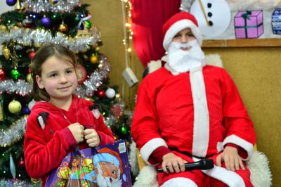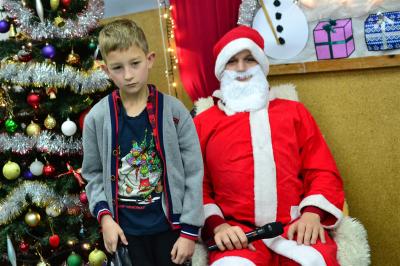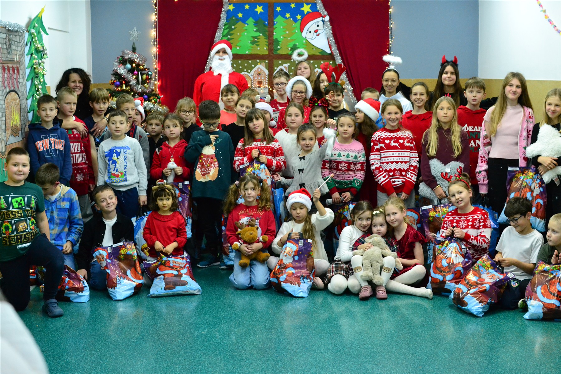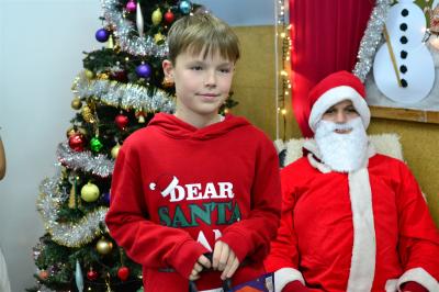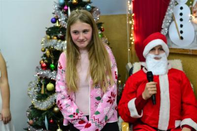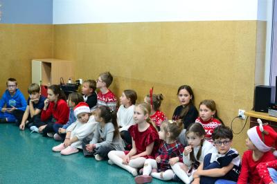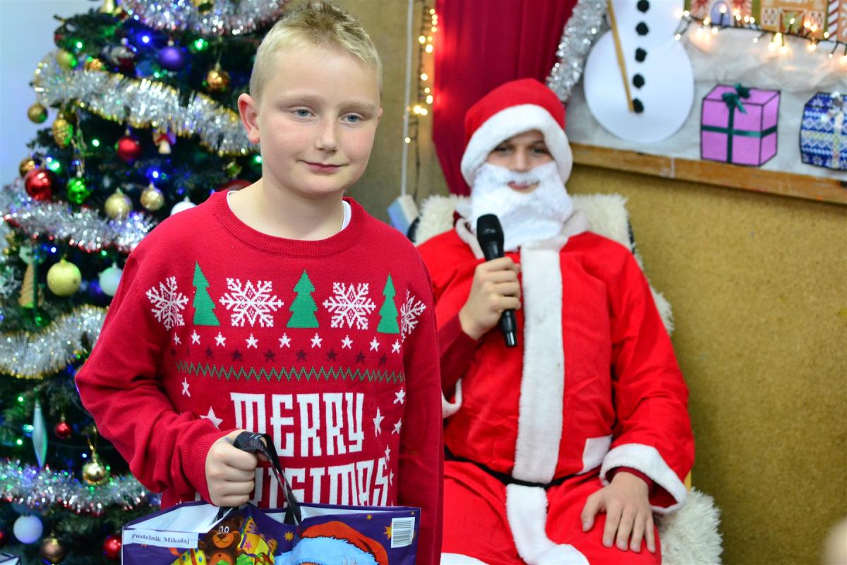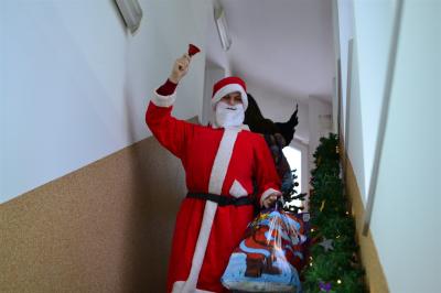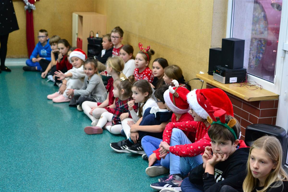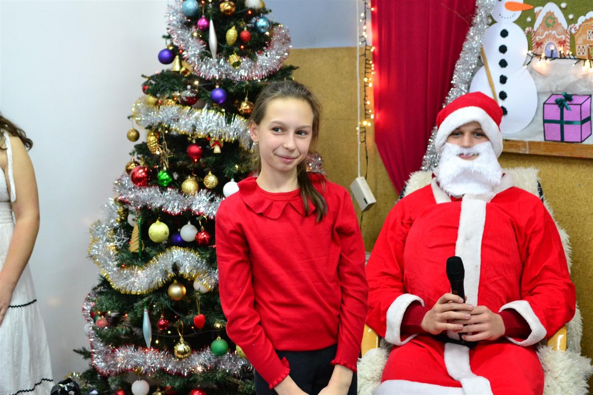 Święty Mikołaj nie zawitał w Świetlicy sam. Przybył w asyście swoich pomocników – roześmianych aniołów i sympatycznego, acz czujnego, diabełka. Dostojny gość, przywitany owacjami, rozsiadł się wygodnie na fotelu ustawionym pod okazałą, pięknie udekorowaną choinką. Wychowawczynie świetlicy co prawda potwierdziły, że wszyscy podopieczni byli w tym roku bardzo grzeczni, jednak Mikołaj postanowił każdorazowo osobiście to sprawdzić. Ucinał sobie przyjacielską pogawędkę, dopytując o miniony rok i plany na przyszłość. Inni z kolei, by udowodnić swoją doskonałą formę, z uśmiechem wykonywali kilka pompek, przysiadów czy pajacyków, wykazując się przy tym świetną koordynacją ruchową.