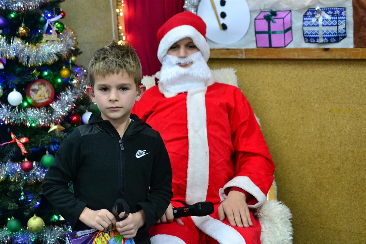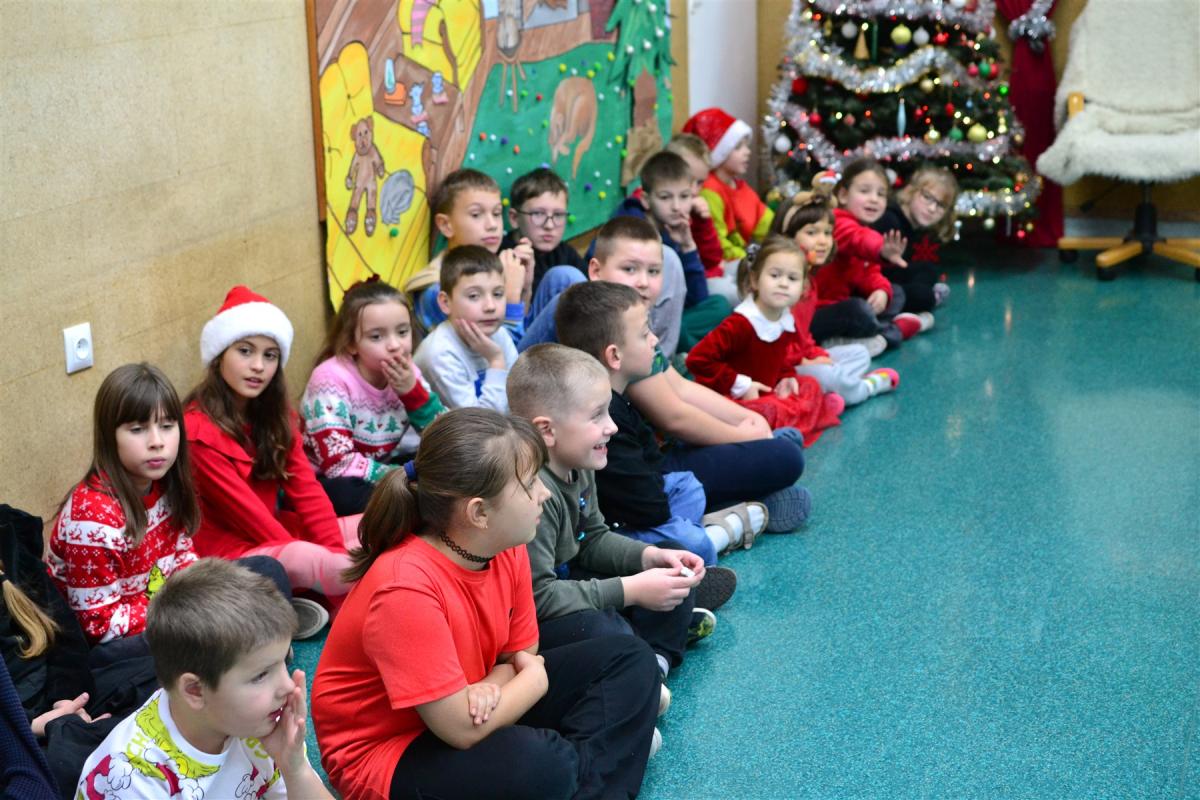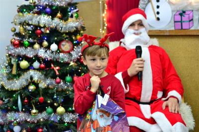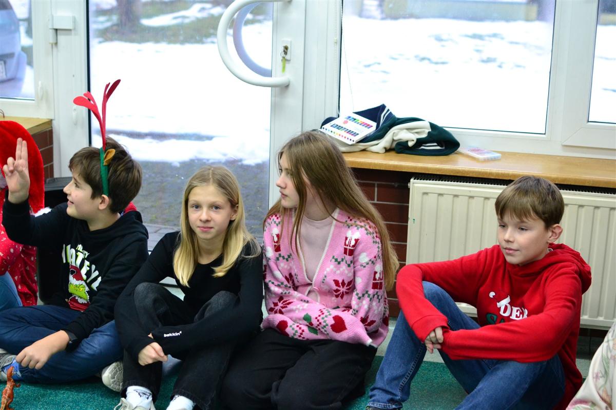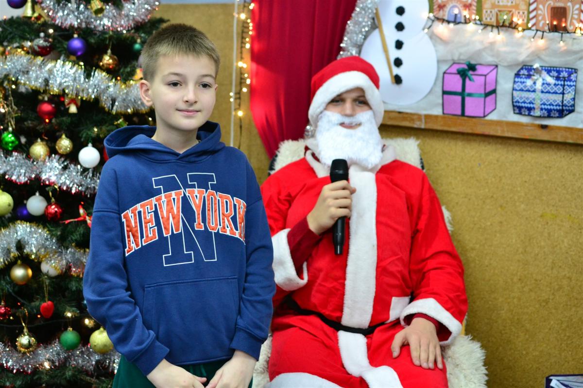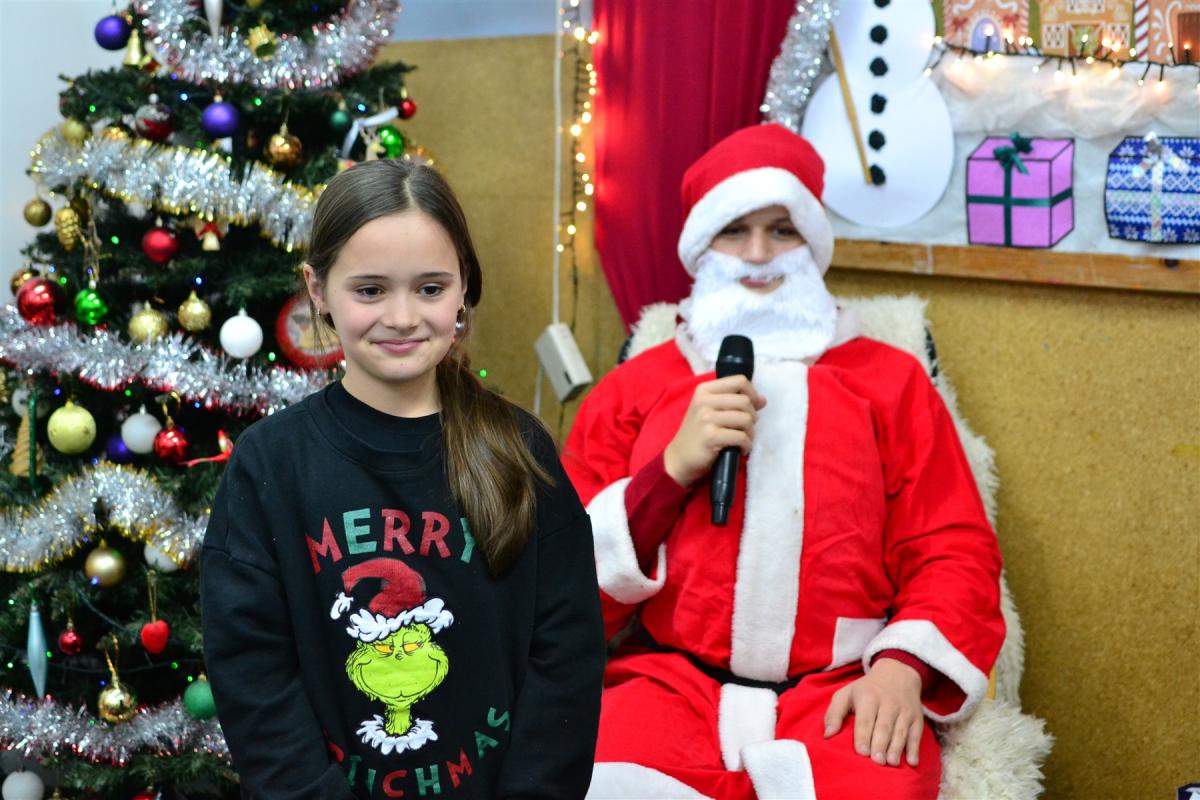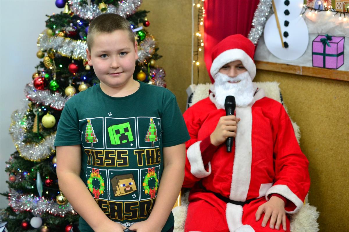 Święty Mikołaj nie zawitał w Świetlicy sam. Przybył w asyście swoich pomocników – roześmianych aniołów i sympatycznego, acz czujnego, diabełka. Dostojny gość, przywitany owacjami, rozsiadł się wygodnie na fotelu ustawionym pod okazałą, pięknie udekorowaną choinką. Wychowawczynie świetlicy co prawda potwierdziły, że wszyscy podopieczni byli w tym roku bardzo grzeczni, jednak Mikołaj postanowił każdorazowo osobiście to sprawdzić. Ucinał sobie przyjacielską pogawędkę, dopytując o miniony rok i plany na przyszłość. Inni z kolei, by udowodnić swoją doskonałą formę, z uśmiechem wykonywali kilka pompek, przysiadów czy pajacyków, wykazując się przy tym świetną koordynacją ruchową.