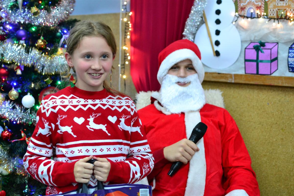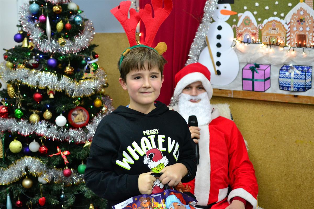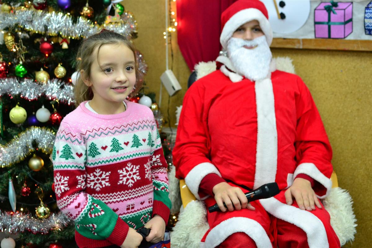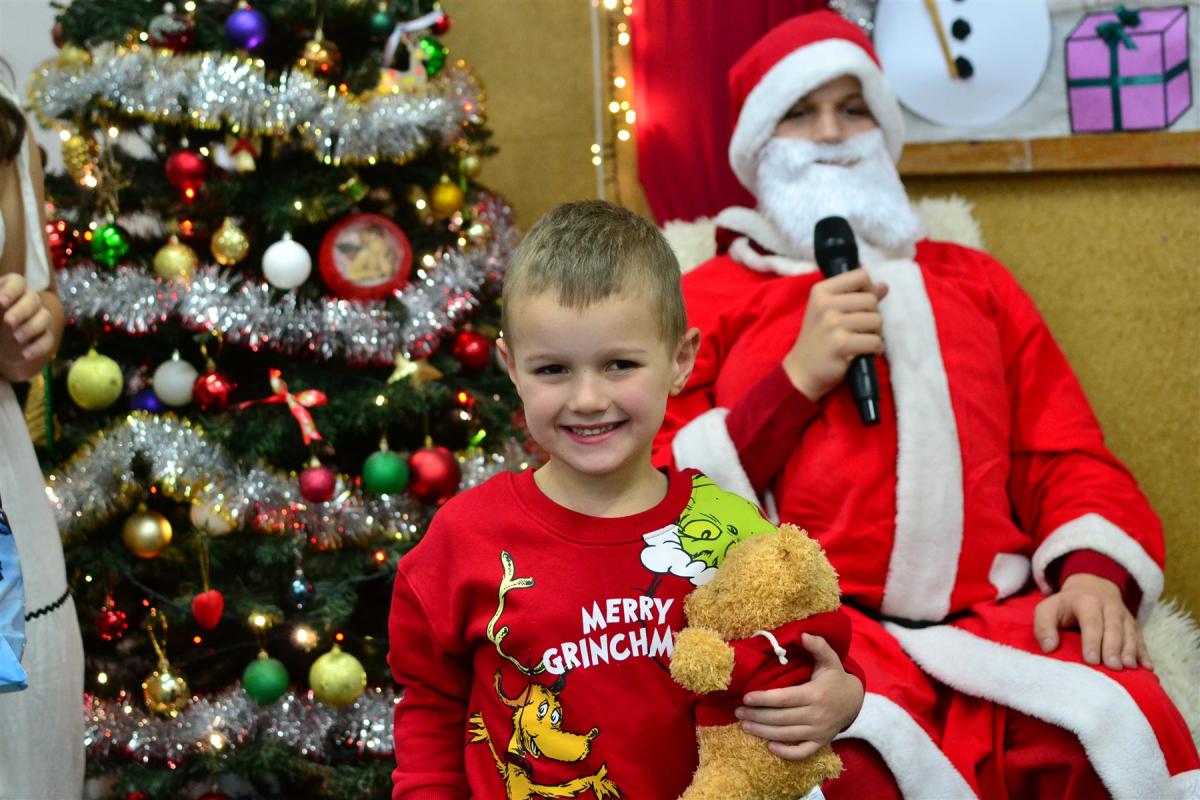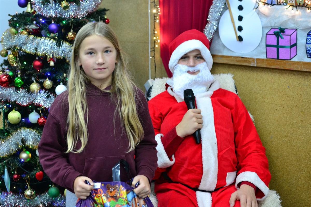 Święty Mikołaj nie zawitał w Świetlicy sam. Przybył w asyście swoich pomocników – roześmianych aniołów i sympatycznego, acz czujnego, diabełka. Dostojny gość, przywitany owacjami, rozsiadł się wygodnie na fotelu ustawionym pod okazałą, pięknie udekorowaną choinką. Wychowawczynie świetlicy co prawda potwierdziły, że wszyscy podopieczni byli w tym roku bardzo grzeczni, jednak Mikołaj postanowił każdorazowo osobiście to sprawdzić. Ucinał sobie przyjacielską pogawędkę, dopytując o miniony rok i plany na przyszłość. Inni z kolei, by udowodnić swoją doskonałą formę, z uśmiechem wykonywali kilka pompek, przysiadów czy pajacyków, wykazując się przy tym świetną koordynacją ruchową.