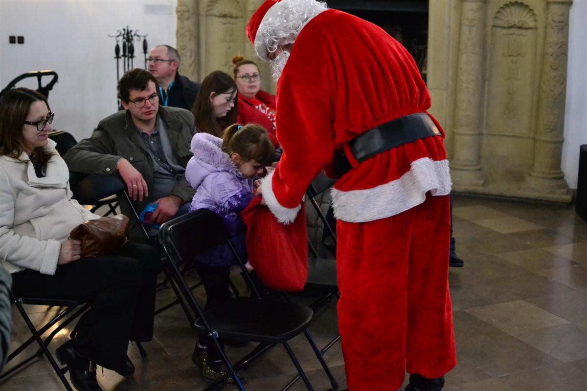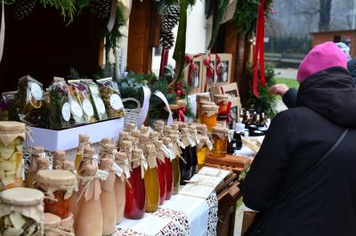 Jarmark był również prawdziwą ucztą dla smakoszy. Na stołach królowały lokalne produkty, aromatyczne miody, domowe ciasta, świąteczne pierniki i ciasteczka przygotowane według rodzinnych receptur, ale również pierogi serwowane na kilka sposób. Najmłodsi z radością oglądali tradycyjne zabawki, które wywoływały szerokie uśmiechy i przypominały o dawnych świętach. Dodatkową atrakcją była wizyta Świętego Mikołaja, który przez wiele godzin przechadzał się po zamkowym dziedzińcu, częstując słodyczami. Wcześniej – rzecz jasna- upewniał się, że dzieci, które obdarowywał cukierkami były przez cały rok grzeczne.