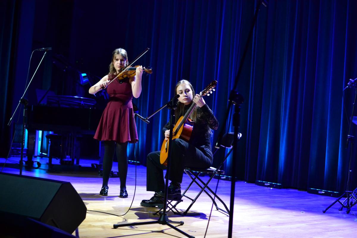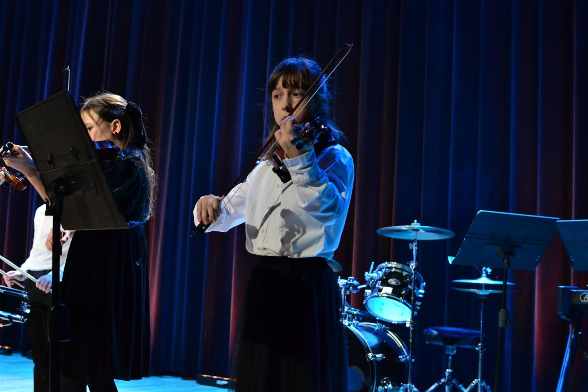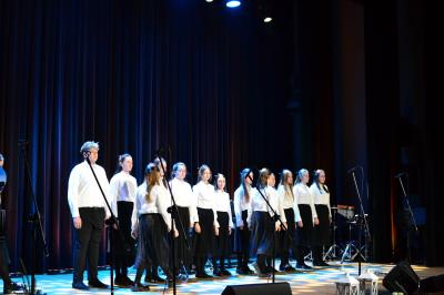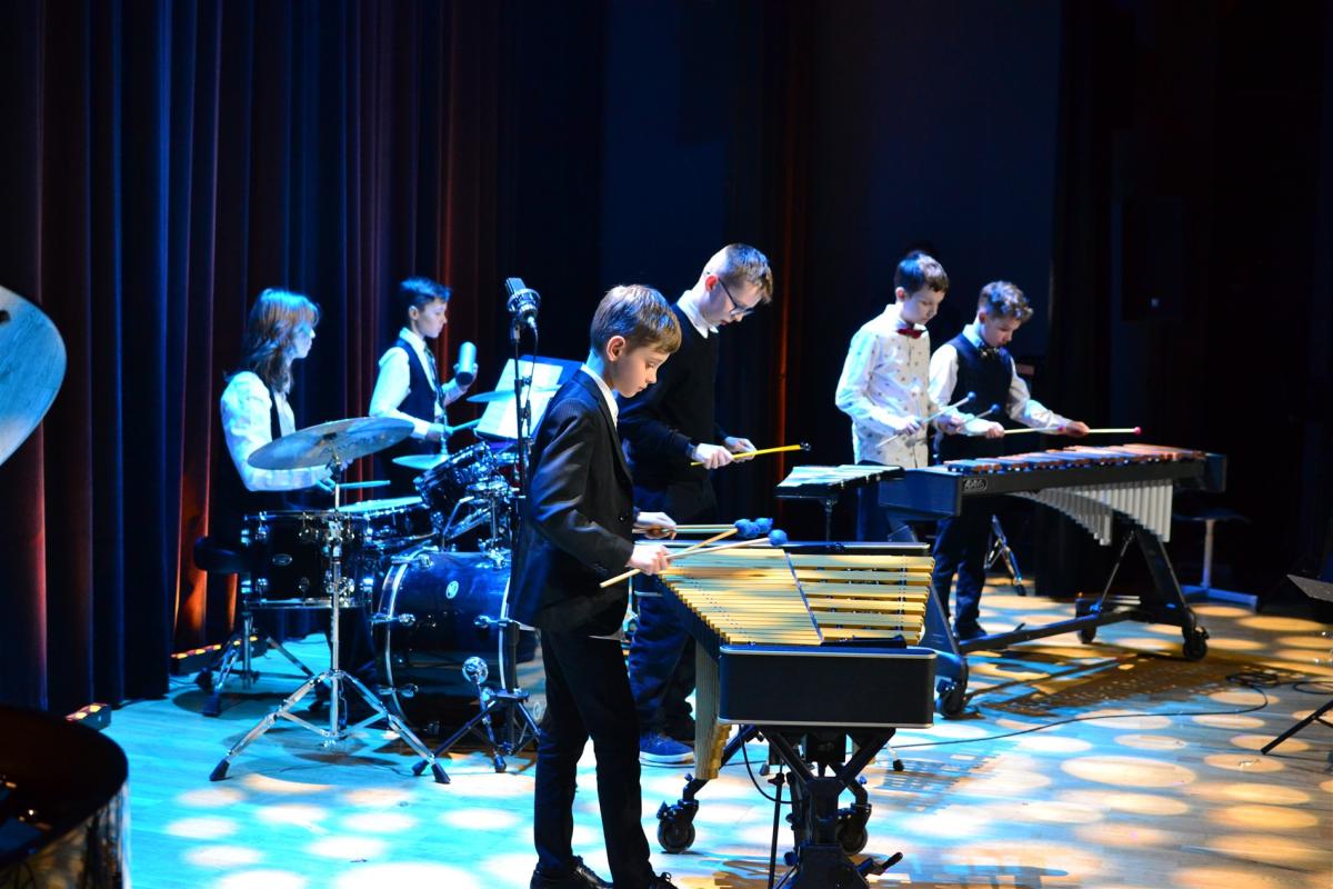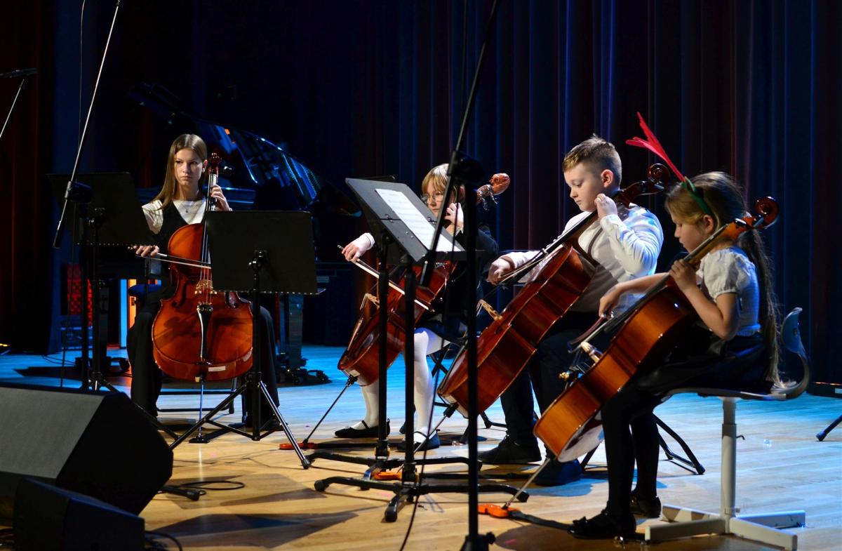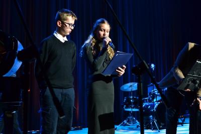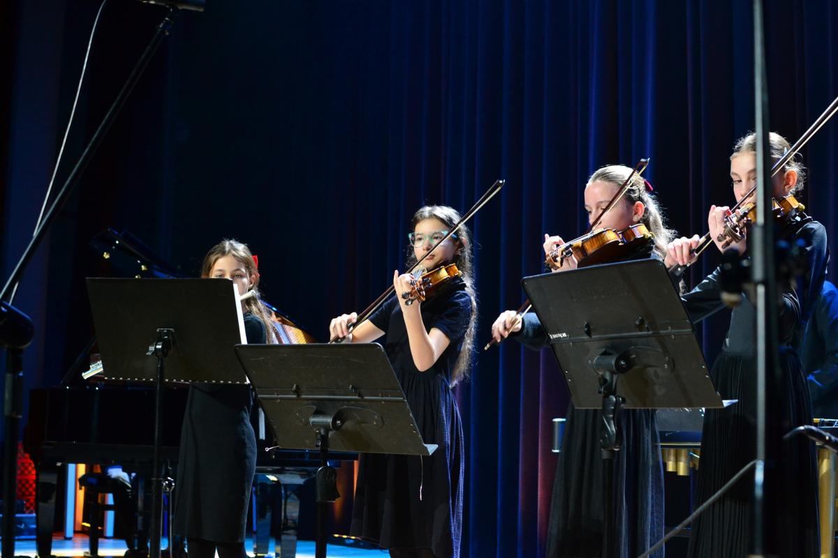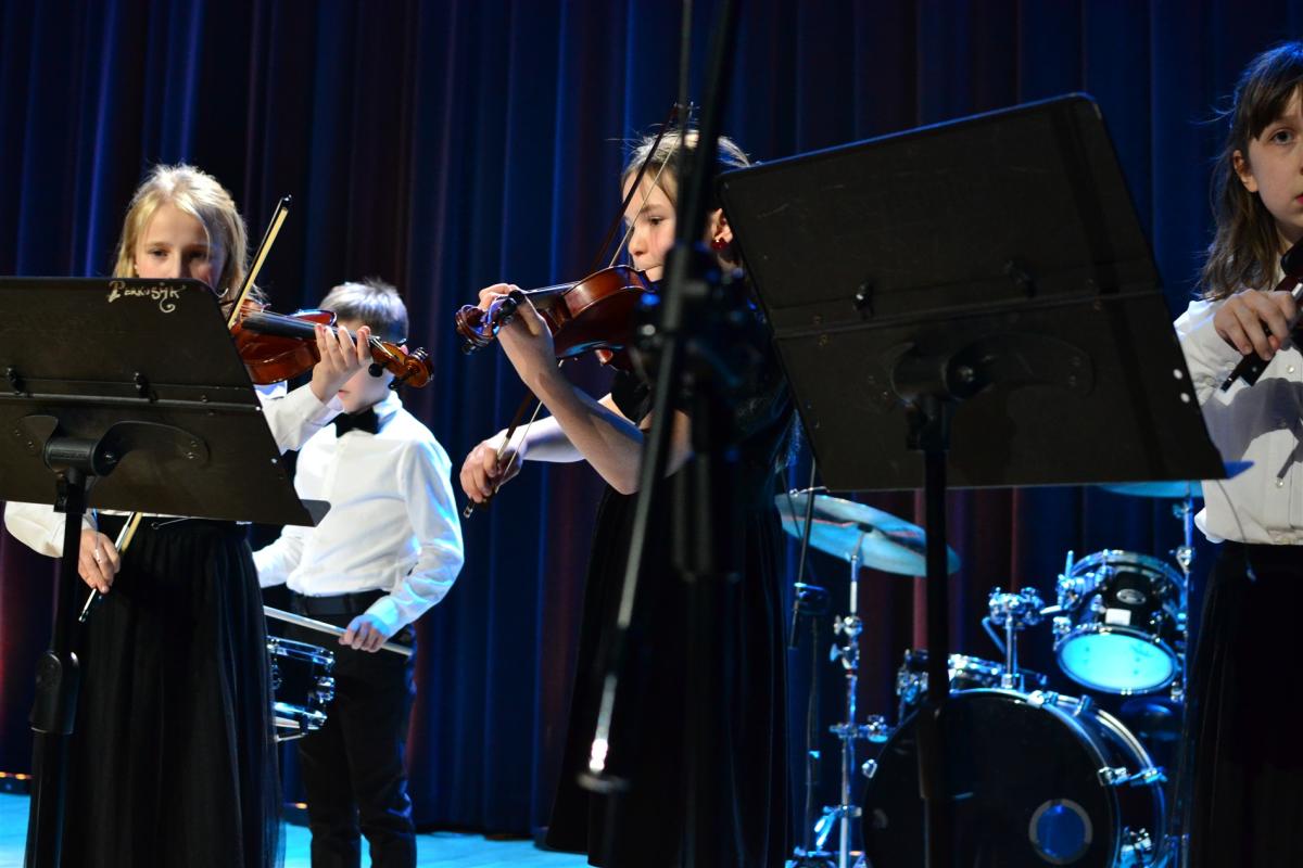 Na scenie często obok uczniów pojawiali się nauczyciele – wspólnie wykonując utwory lub akompaniując młodym artystom. Ta współpraca pokazała nie tylko wysoki poziom artystyczny szkoły, ale też wyjątkową więź, jaka łączy pedagogów z uczniami. Jak co roku nauczyciele przygotowali również muzyczną niespodziankę, wykonując chóralnie „Cichą noc” oraz „Przybieżeli do Betlejem”. Zwieńczeniem wieczoru był występ Orkiestry Dętej, która zaprezentowała „Marsz świąteczny na góralską nutę” Krzysztofa Procka, „A Swinkling Christmas” - wiązankę utworów „Let it Snow”, „White Christmas” i „Frosty the Snowman” dynamiczne „Z kopyta kulig rwie” Waldemara Nowakowskiego.