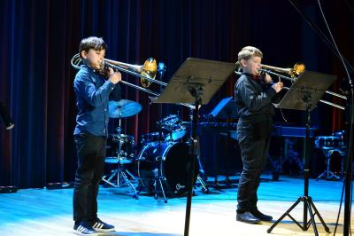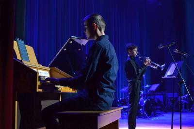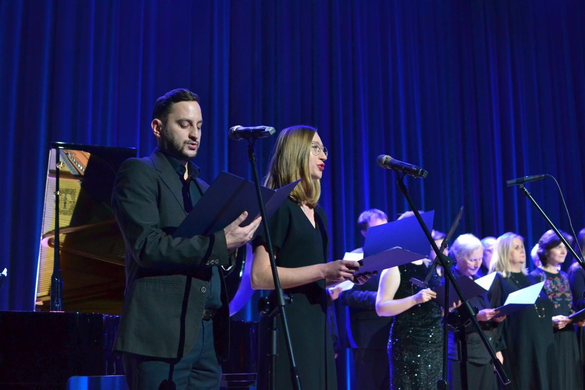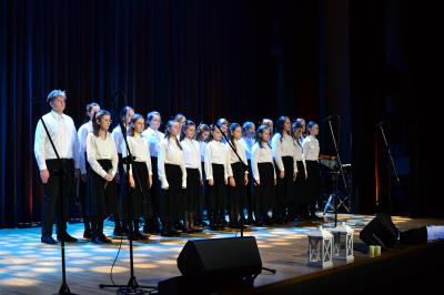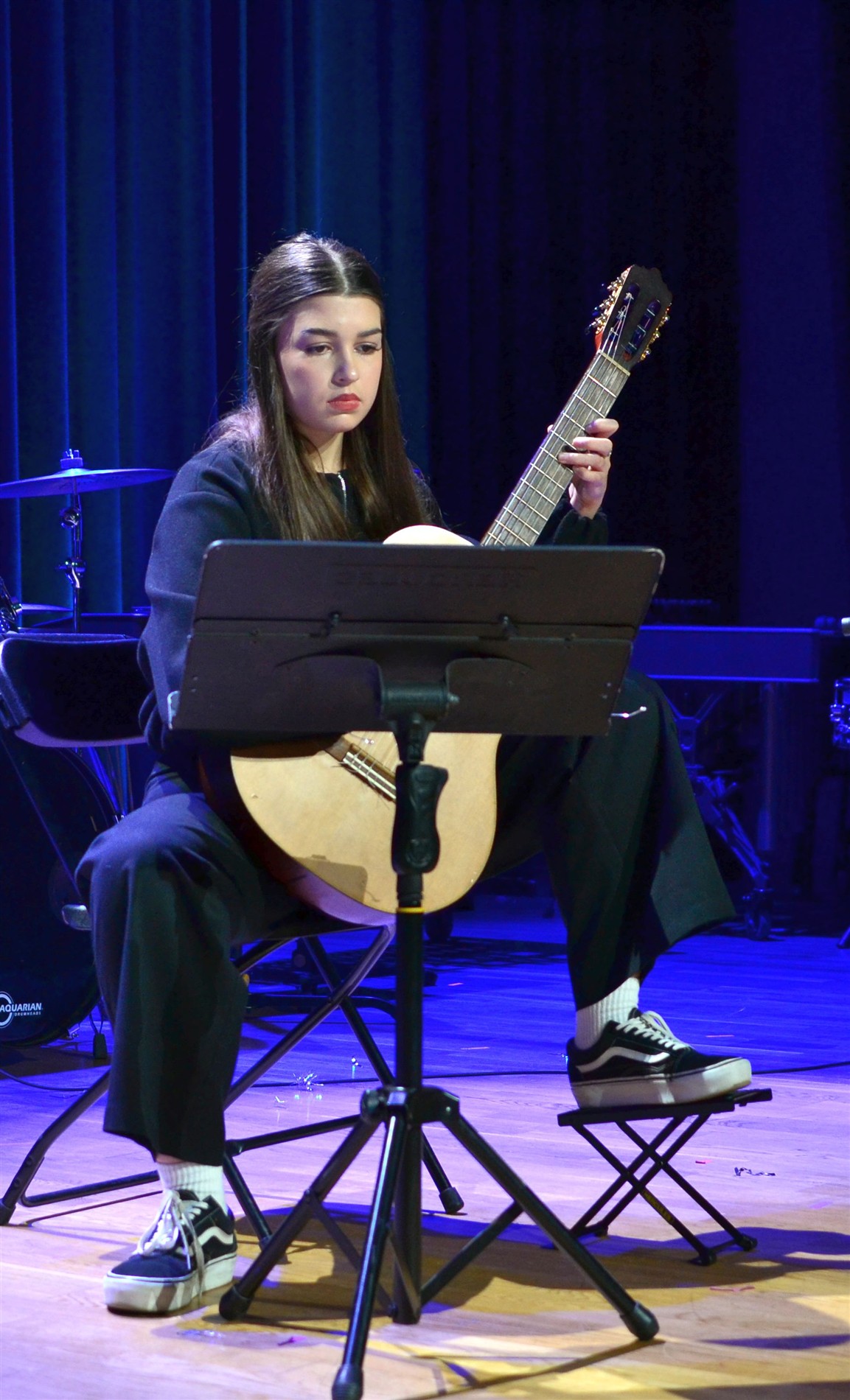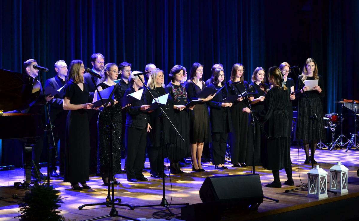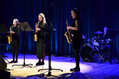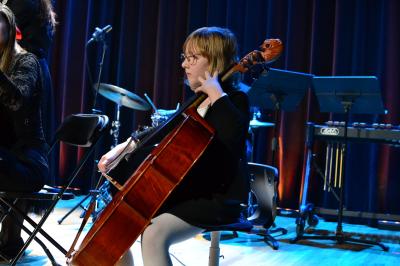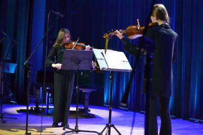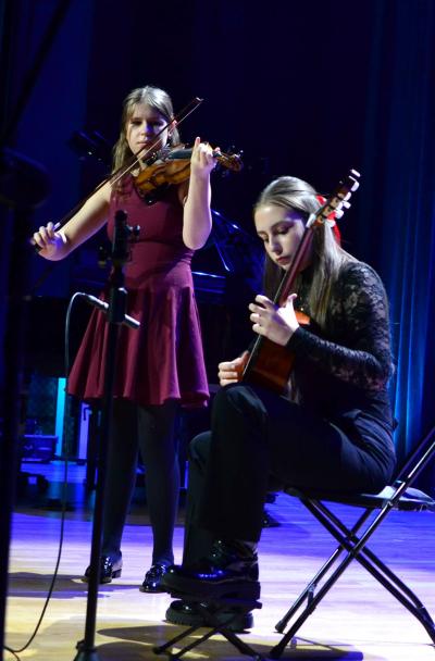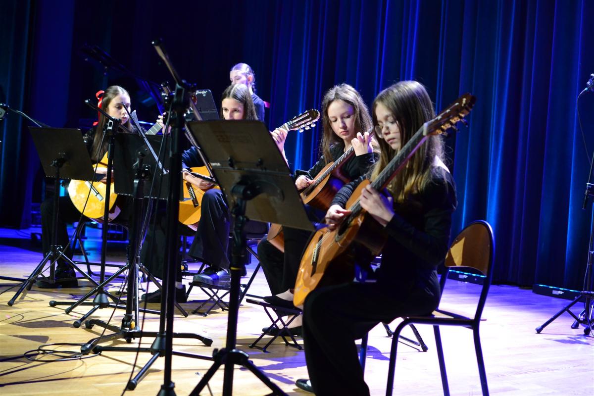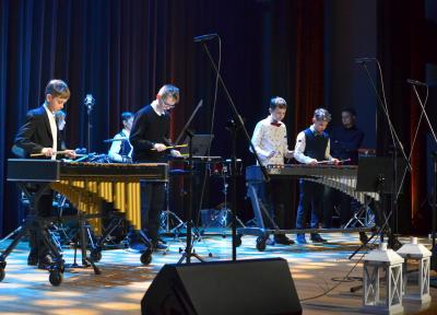 Na scenie często obok uczniów pojawiali się nauczyciele – wspólnie wykonując utwory lub akompaniując młodym artystom. Ta współpraca pokazała nie tylko wysoki poziom artystyczny szkoły, ale też wyjątkową więź, jaka łączy pedagogów z uczniami. Jak co roku nauczyciele przygotowali również muzyczną niespodziankę, wykonując chóralnie „Cichą noc” oraz „Przybieżeli do Betlejem”. Zwieńczeniem wieczoru był występ Orkiestry Dętej, która zaprezentowała „Marsz świąteczny na góralską nutę” Krzysztofa Procka, „A Swinkling Christmas” - wiązankę utworów „Let it Snow”, „White Christmas” i „Frosty the Snowman” dynamiczne „Z kopyta kulig rwie” Waldemara Nowakowskiego.