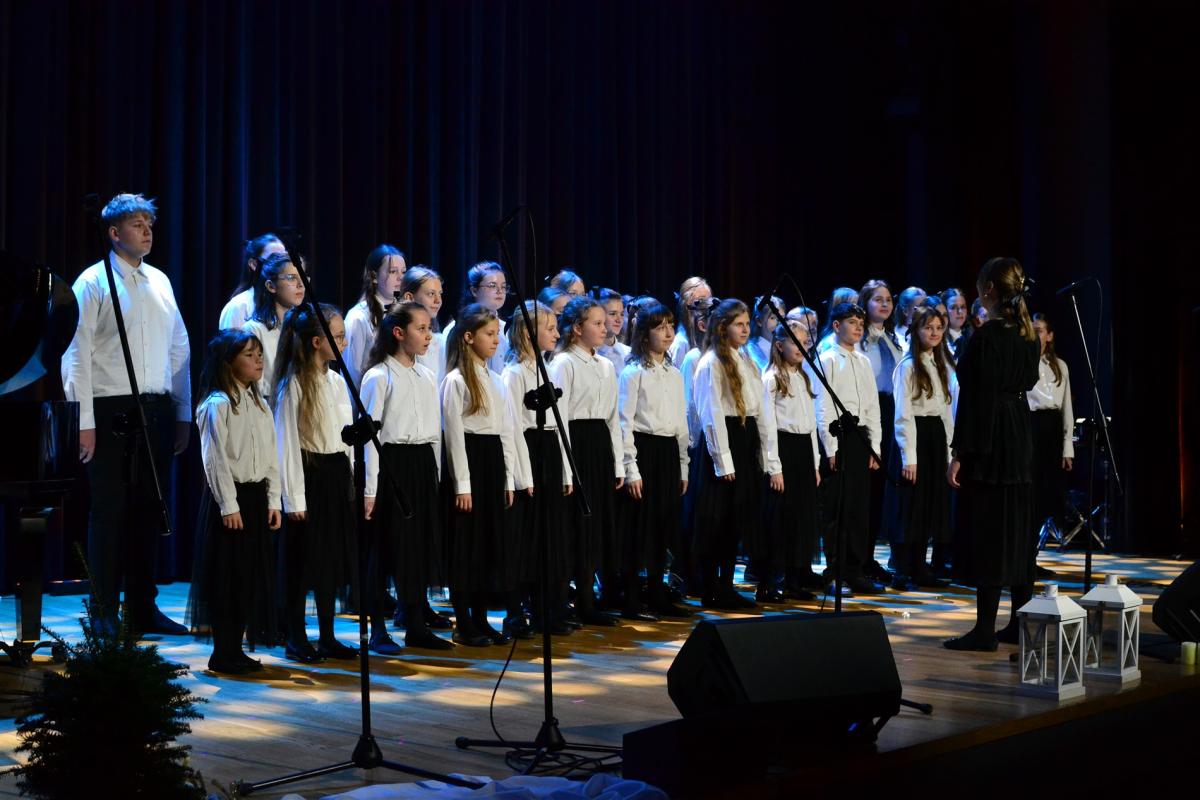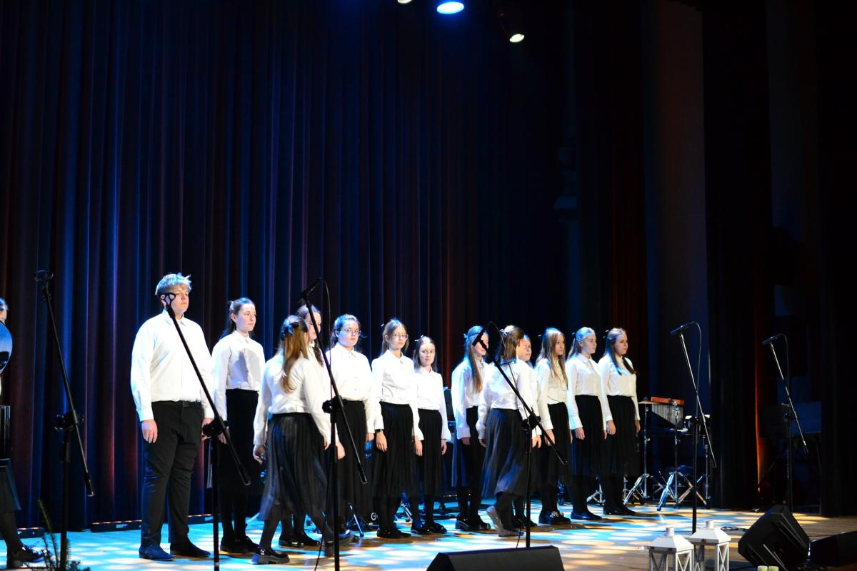 Jako pierwsi na scenie pojawili się członkowie chóru szkolnego, wykonując kolędy „Śpieszmy do Stajenki” oraz „Gdy Śliczna Panna”. Ich harmonijne głosy natychmiast wprowadziły słuchaczy w refleksyjny nastrój, tak bardzo kojarzący się z domowym przeżywaniem świąt. W dalszej części koncertu publiczność miała okazję usłyszeć najpiękniejsze polskie kolędy i pastorałki prezentowane solo, w duetach oraz w większych zespołach, co pozwoliło w pełni docenić talent, wrażliwość i muzyczną dojrzałość młodych wykonawców.