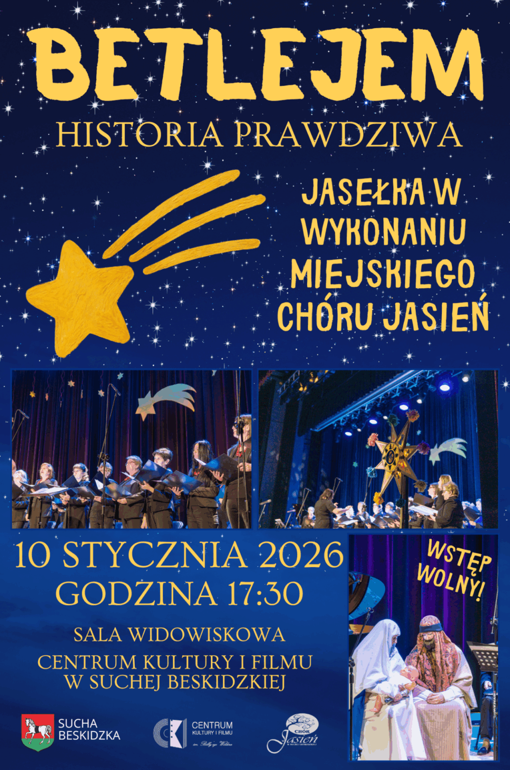 Już w sobotę, 10 stycznia o godz. 17.30 w sali widowiskowej Centrum Kultury i Filmu w Suchej Beskidzkiej wystawiona zostanie przez Miejski Chór Jasień niecodzienna sztuka, opowiadająca o narodzinach Jezusa „Betlejem. Historia prawdziwa”.