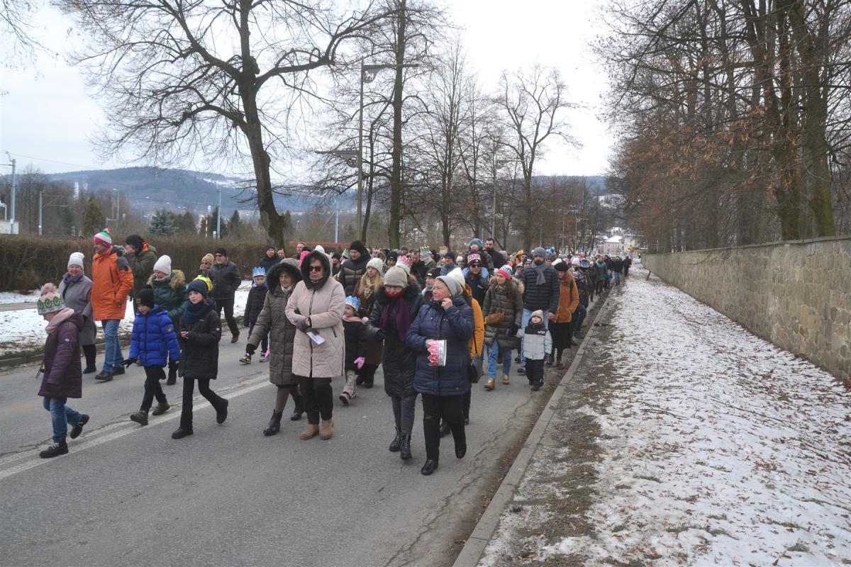 Uroczystości rozpoczęła msza święta w kościele parafialnym. Tuż po niej, około południa, ulicami miasta wyruszył barwny pochód. Na jego czele podążali Trzej Królowie, a towarzyszyły im zespoły regionalne, Miejska Orkiestra Dęta oraz Miejski Chór „Jasień” działające przy Centrum Kultury i Filmu. Tegoroczne hasło „Nadzieją się cieszą!” wybrzmiewało nie tylko w słowach, ale przede wszystkim w atmosferze wydarzenia. Wspólne kolędowanie sprawiło, że orszak szybko zamienił się w rozśpiewany tłum, w którym obok siebie szły rodziny z dziećmi, seniorzy i młodsi mieszkańcy miasta. Wielu z nich miało na głowach papierowe korony rozdawane po Mszy Świętej, a śpiewniki pomagały włączyć się w kolędowanie także tym, którzy na co dzień śpiewają rzadziej.
