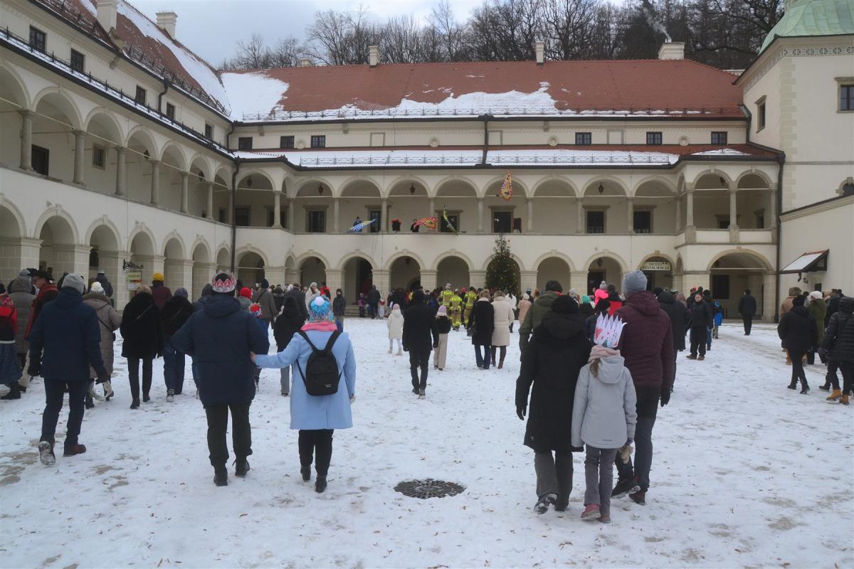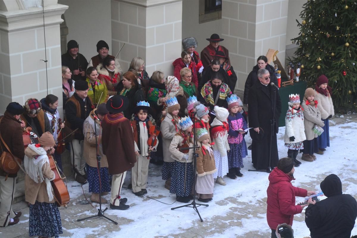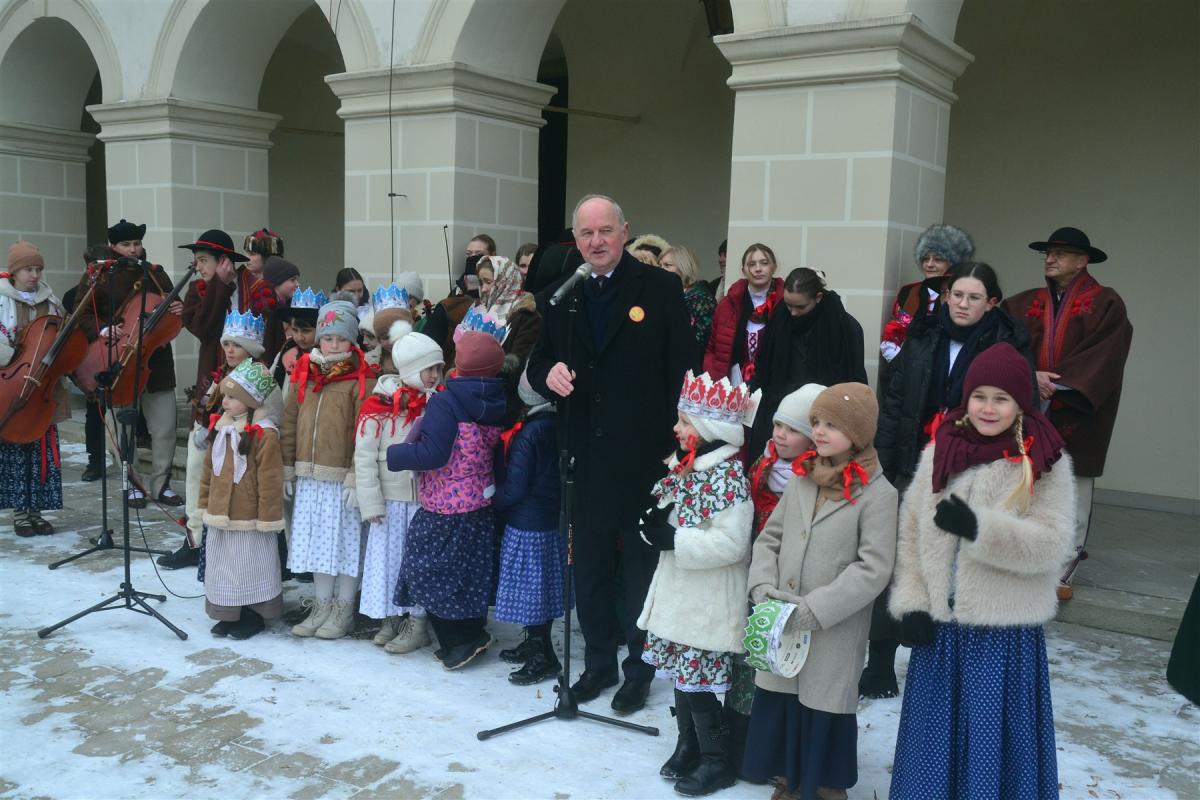Trasa orszaku, podobnie jak w poprzednich latach, prowadziła na dziedziniec suskiego zamku. To tam Mędrcy ze Wschodu oddali symboliczny pokłon narodzonemu Dzieciątku. W tym miejscu padły również życzenia skierowane do mieszkańców, które złożyli burmistrz miasta Stanisław Lichosyt oraz proboszcz parafii ks. Wiesław Popielarczyk, podkreślając znaczenie pokoju, wspólnoty, zdrowia i wzajemnej życzliwości.