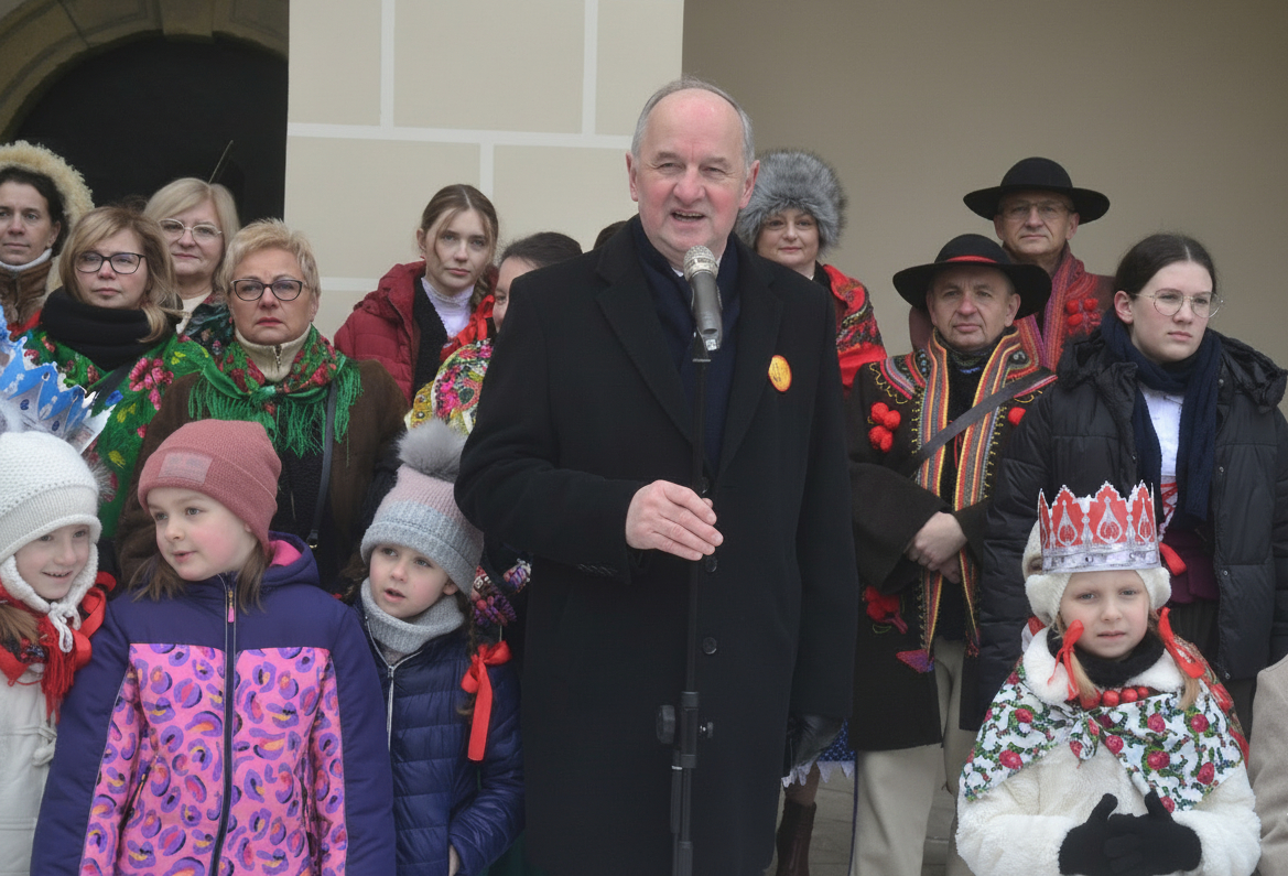 We wtorek, 6 stycznia, Sucha Beskidzka po raz kolejny stała się przestrzenią wspólnego świętowania. Ulicami miasta już po raz jedenasty przeszedł Orszak Trzech Króli, licznie gromadząc mieszkańców w różnym wieku, którzy mimo zimowej aury chętnie wyszli z domów, by razem przeżyć Święto Objawienia Pańskiego z kolędą na ustach.
