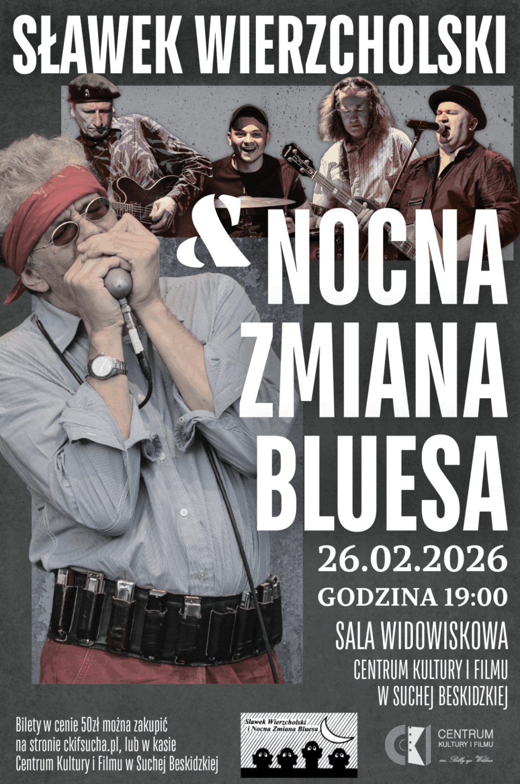 Już 29 lutego (piątek) o godz. 19.00 w sali widowiskowej Centrum Kultury i Filmu w Suchej Beskidzkiej wystąpi jeden z najważniejszych zespołów bluesowych w historii polskiej muzyki - Sławek Wierzcholski i Nocna Zmiana Bluesa.