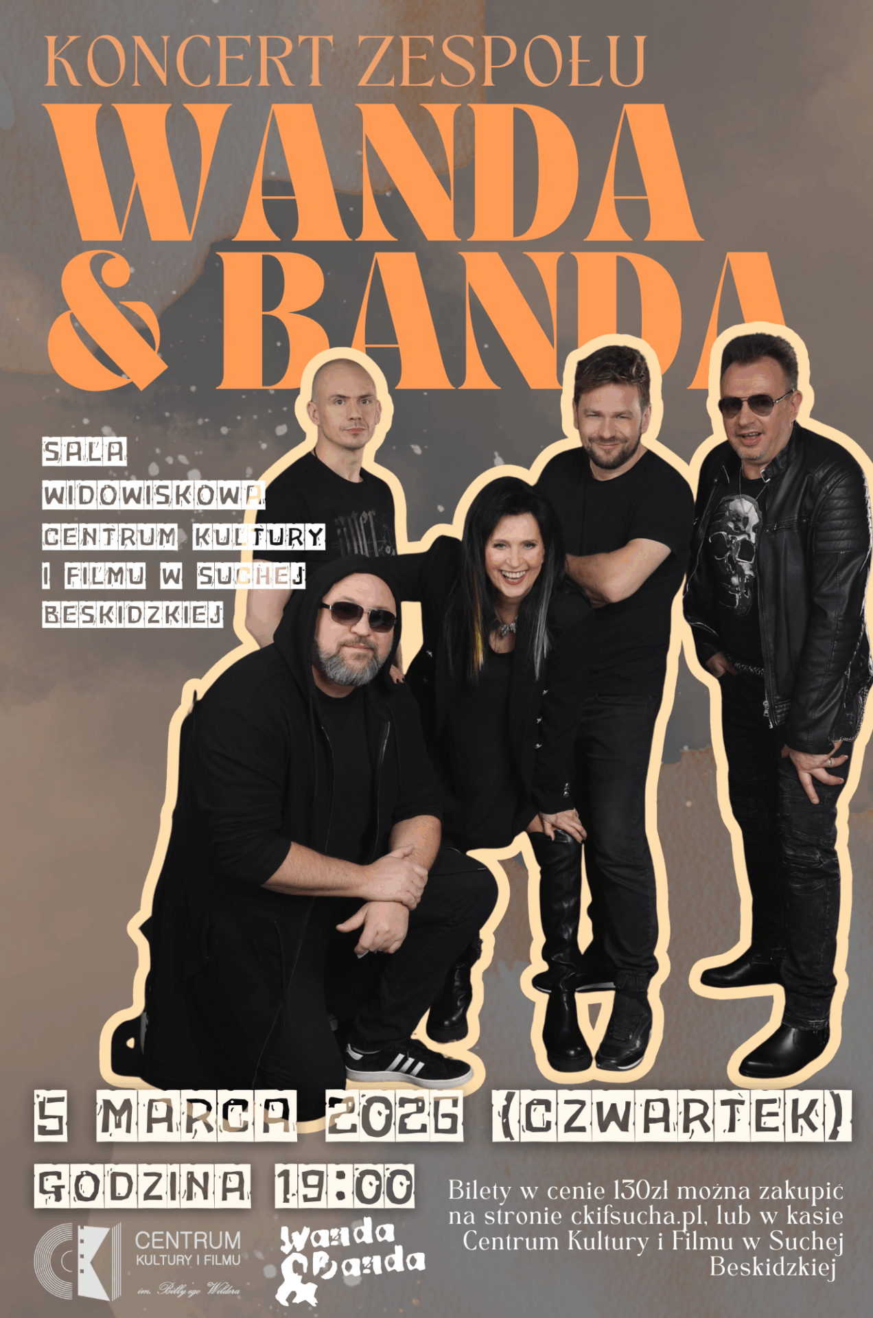 Już 5 marca o godz. 19:00 w sali widowiskowej Centrum Kultury i Filmu zabrzmią największe przeboje legendarnej formacji Wanda i Banda. Przed publicznością wystąpi jeden z najważniejszych zespołów polskiego rocka lat 80., który mimo upływu czasu wciąż imponuje sceniczną energią i autentycznością.
