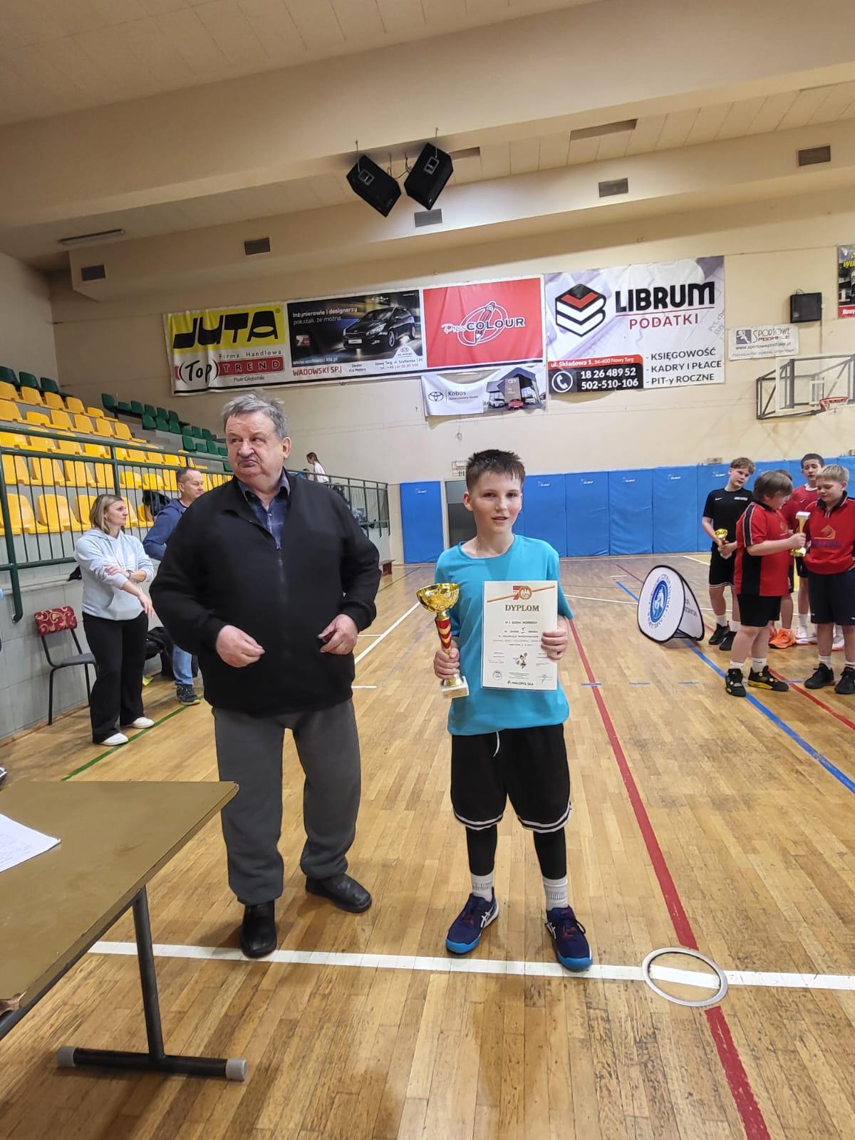 W nowotarskich zawodach rywalizowali mistrzowie powiatów: suskiego, myślenickiego, nowotarskiego i tatrzańskiego. Prowadzeni przez Piotra Staszaka młodzi koszykarze SP nr 1 w Suchej Beskidzkiej w swoim pierwszym meczu zmierzyli się z rówieśnikami ze SP nr 2 w Rabce (mistrz powiatu nowotarskiego), zwyciężając 13:7. Nie tylko na radość, ale przede wszystkim na odpoczynek nie mieli zbyt wiele czasu. Dosłownie kilka minut później musieli ponownie wybiec na parkiet, by stanąć do boju z reprezentantami SP w Czechówce (mistrz powiatu myślenickiego). Suszanie, nie bacząc na zmęczenie, od początku spotkania kontrolowali wydarzenia na parkiecie. Ponownie rzucili rywalom 13 punktów, a przy tym zagrali skuteczniej w obronie, pozwalając przeciwnikom na zdobycie zaledwie 5 punktów. Dzięki tej wygranej zapewnili sobie triumf w całych zawodach i tym samym awans na zawody wojewódzkie, które odbędą się w ostatnim tygodniu marca (dokładny termin nie został jeszcze ustalony) w Brzesku.