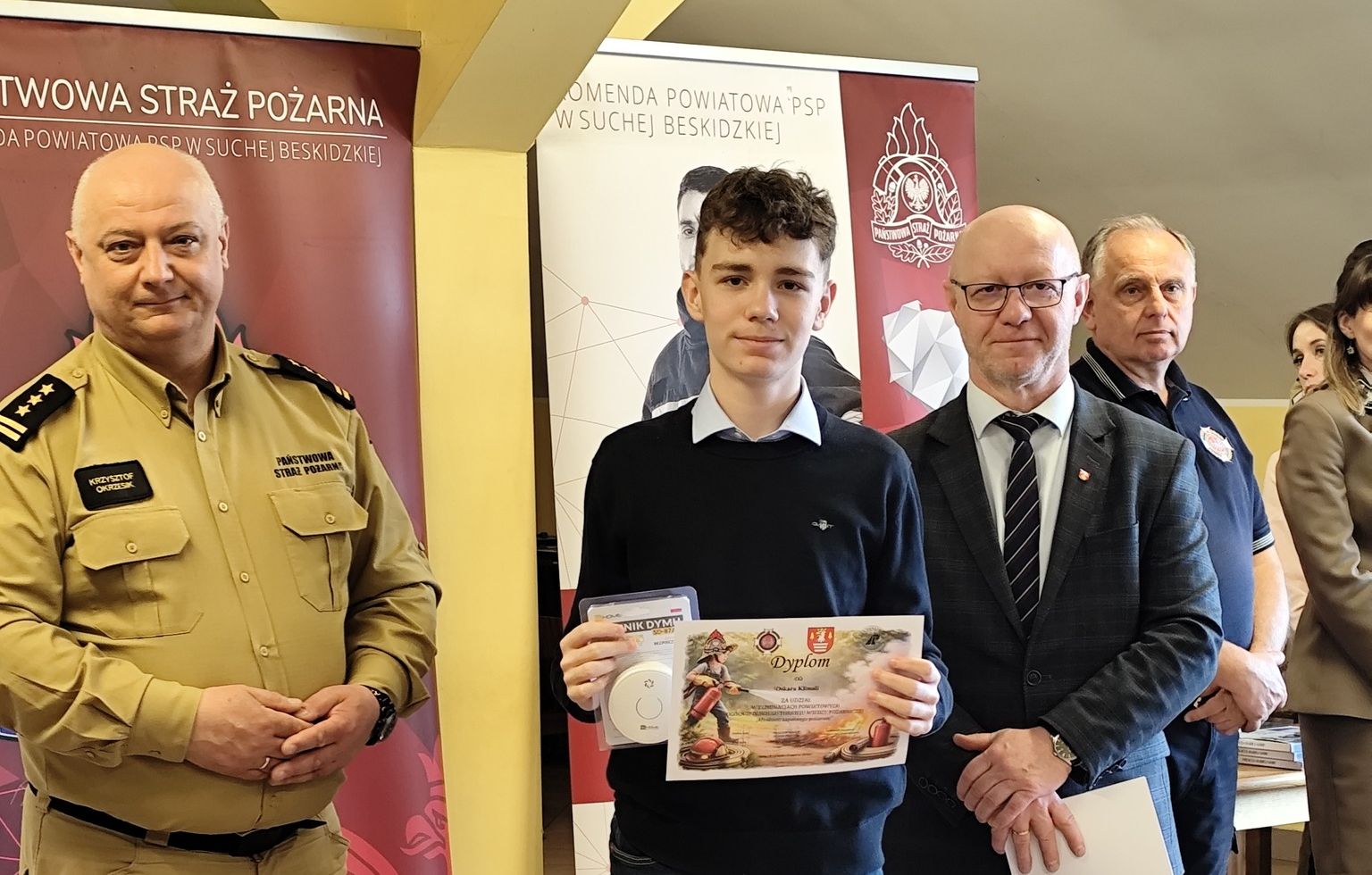 W środę, 25 marca, w Komendzie Powiatowej Państwowej Straży Pożarnej w Suchej Beskidzkiej spotkali się młodzi pasjonaci pożarnictwa. Wzięli udział w etapie powiatowym Ogólnopolskiego Turnieju Wiedzy Pożarniczej pod hasłem „Młodzież Zapobiega Pożarom” (OTWP). W gronie laureatów znalazł się uczeń siódmej klasy Szkoły Podstawowej nr 2 w Suchej Beskidzkiej, Oskar Klimala, który będzie reprezentował Powiat Suski na szczeblu wojewódzkim!