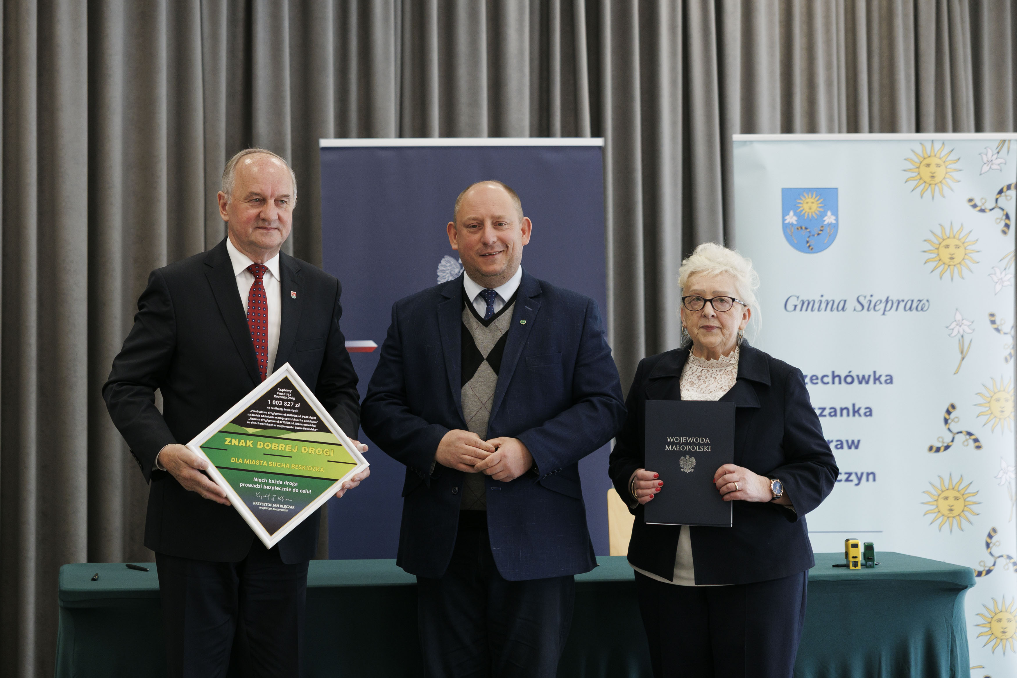 Ponad milion złotych, to kwota dofinansowania, jakie Sucha Beskidzka pozyskała na dwie inwestycje drogowe zaplanowane na 2026 rok. Umowa z Wojewodą Małopolskim Krzysztofem Janem Klęczarem została uroczyście podpisana 25 marca w Sieprawiu przez Burmistrza Miasta Stanisława Lichosyta i Skarbnik Gminy Halinę Kozioł. Przyznana naszemu miastu dotacja z Rządowego Funduszu Rozwoju Dróg to kolejny dowód na skuteczność samorządu w pozyskiwaniu funduszy zewnętrznych na systematyczną przebudowę miejskich ulic.
