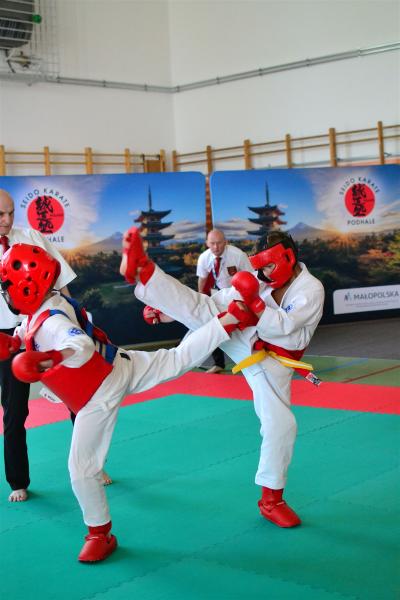 Sportowe zmagania rozpoczęły się od konkurencji kata, czyli prezentacji tradycyjnych układów technik obrony i ataku. W tej niezwykle technicznej formule nie było miejsca na najmniejszy błąd. Sędziowie z dużą uwagą oceniali precyzję każdego ruchu, maksymalne skupienie zawodników, a także prawidłowy oddech i głośny, wyzwalający energię okrzyk. Jeszcze większych emocji zarówno wśród zawodników, jak i kibiców dostarczyła druga część zawodów – widowiskowe walki kumite, które rozegrano w dwóch odmiennych formułach. Rywalizację otworzyła kategoria one-point, czyli walka punktowa, przerywana przez sędziego natychmiast po wykonaniu udanej, czystej akcji. Następnie na matę wkroczyli zawodnicy startujący w formule full contact.