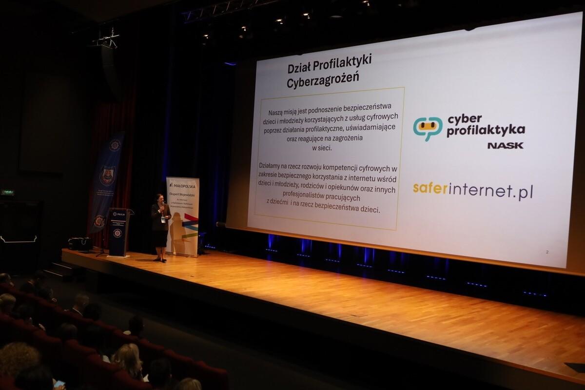 Program konferencji był bardzo merytoryczny i odpowiadał na najbardziej aktualne wyzwania współczesnego świata. Zjawisko uzależnień zostało tu potraktowane bardzo szeroko. Nie tylko w kontekście substancji psychoaktywnych, ale również, a może przede wszystkim, w kontekście zagrożeń cyfrowych i problemów psychologicznych. Jako pierwszy głos zabrał dr n. med. Krzysztof Walczewski. Doświadczony lekarz specjalista psychiatrii, psychoterapeuta i superwizor Polskiego Towarzystwa Psychiatrycznego przybliżył zebranym fundamentalne zagadnienie odporności psychicznej, wskazując, jak ją prawidłowo diagnozować i skutecznie rozwijać. Zgromadzeni z uwagą wysłuchali również jego prezentacji na temat innowacyjnego narzędzia, jakim jest kalkulator depresji. W dalszej części spotkania dominowały tematy związane z wirtualnym światem, w którym na co dzień funkcjonuje współczesna młodzież. Silną reprezentację podczas konferencji zapewnili eksperci z NASK (Naukowej i Akademickiej Sieci Komputerowej). Kierownik Działu Profilaktyki Cyberzagrożeń, Anna Rywczyńska omówiła profilaktykę przemocy rówieśniczej w kontekście cyfrowego ekosystemu dziecka. Z kierownik Zespołu Projektów Społecznych i Współpracy Międzynarodowej kolei Julia Piechna podjęła niezwykle nowoczesny i niepokojący temat emocjonalnych relacji dzieci i młodzieży ze sztuczną inteligencją, określając to zjawisko mianem „zaprogramowanej bliskości”. Uczestnicy wysłuchali także prelekcji kierownika Zespołu IV Dyżurnet.pl Arkadiusza Michałowskiego, który przeanalizował obecne w sieci trendy, niosące za sobą szkodliwe dla najmłodszych treści. Blok prelekcji zamknął Maciej Groń, ekspert ds. regulacji prawnych i współpracy naukowej Dyżurnet.pl, który wyjaśnił prawne aspekty i narzędzia służące do walki z nielegalnymi treściami w internecie.