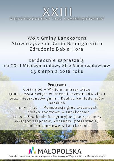 Raz w roku, w ostatnią sobotę sierpnia, samorządowcy ze wszystkich gmin na obszarze Stowarzyszenia Gmin Babiogórskich, a także zaprzyjaźnionych gmin słowackich, wraz z rodzinami i znajomymi, wyruszają na szlaki Ziemi Babiogórskiej, by podziwiać piękno jej przyrody i krajobrazu oraz spotkać się z przyjaciółmi. Corocznie gospodarzem imprezy jest inna gmina, miasto Sucha Beskidzka już dwukrotnie pełnio role gospodarza w roku 2006 i 2016. W tym roku gościć nas będzie Gmina Lanckorona, a Złaz Samorządowców odbędzie się w sobotę tj. 25 sierpnia.