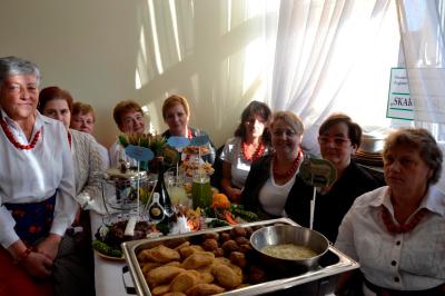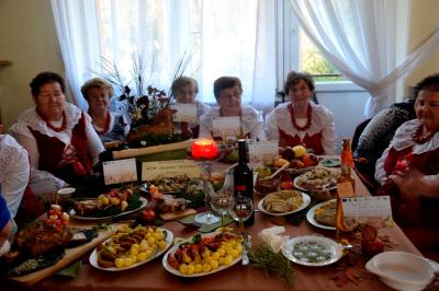 W kulinarnych zmaganiach wystartowało 18 ekip. Tematem przewodnim tegorocznej edycji była baranina. Specjały przygotowane przez uczestników konkursu, choć inspirowane tradycją, były niezwykle kunsztowne i dalece odbiegały od znanych nam na co dzień potraw i przekąsek. Dania konkurowały w trzech kategoriach: potrawa typowo regionalna, współczesna potrawa oparta na tradycjach potraw regionalnych oraz tradycyjna nalewka. Oprócz oceny techniki wykonania potrawy i zastosowania ciekawych połączeń smakowych w czasie degustacji jury zwracało również uwagę na kompozycję i prezentację serwowanych dań. W tegorocznym konkursie panie z Stowarzyszenia Miłośników Regionu Suskiego „Skarbiec Suski” znalazły się na podium zajmując 3. miejsce w kategorii tradycyjne nalewki za nalewkę o intrygującej nazwie „Łzy świerszcza”. Ponadto gospodynie otrzymały wyróżnienie w kategorii potrawy typowo regionalnej za rosół z baraniny z ziemniaczkami. Nasze gospodynie udowodniły, że w kuchni nie mają sobie równych. Stowarzyszenie Miłośników Regionu Suskiego „Skarbiec Suski” do konkursu oprócz nagrodzonych potraw, przygotowały między innymi fantastyczną kiełbasę z baraniny, która cieszyła się dużym powodzeniem wśród odwiedzających konkurs gości. Zachwyciły również wystrojem stołu oraz pomysłowym sposobem prezentacji potraw.