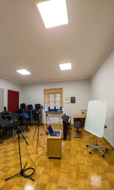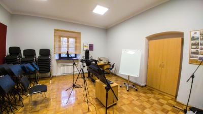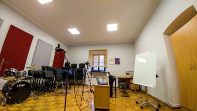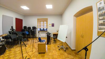 W toku kompleksowych prac modernizacyjnych w sali muzycznej wykonano roboty remontowe, które swym zakresem obejmowały uzupełnienie tynków na ścianach, malowanie pomieszczenia, wymianę istniejącej instalacji grzewczej, a także montaż nowoczesnego i energooszczędnego oświetlenia typu LED. Pracownia została ponadto wyposażona w nowe meble do przechowywania instrumentów i akcesoriów muzycznych, panele akustyczne wytłumiające pomieszczenie, tablicę edukacyjną, krzesła i pulpity muzyczne. Z myślą o działających przy Miejskim Ośrodku Kultury – Zamek zespołach i grupach muzycznych pracownia została doposażona w nowoczesny sprzęt m.in. przenośne pianino cyfrowe, laptop wraz z programem do obróbki cyfrowej dźwięku oraz sprzęt studyjny w postaci cyfrowego rejestratora dźwięku i mikrofonów pojemnościowych. Wykonane prace remontowe i zakupione wyposażenie umożliwiło poprawę standardu pracowni, poprzez wykonanie nowoczesnej aranżacji pomieszczenia, a także wpłynęło na zwiększenie jego funkcjonalności. Zakupiony sprzęt studyjny posłuży instruktorom i muzykom do tworzenia i rejestracji utworów w celach edukacyjnych, promocyjnych i dokumentacyjnych, archiwizujących dziedzictwo Podbabiogórza oraz nagrań demo wymaganych przy zgłoszeniach do przesłuchań konkursowych, a także umożliwi analizę wykonań i korektę brzmieniową poszczególnych nagrań. Oprócz zajęć stacjonarnych realizowanych w pracowni, z myślą o występach i koncertach zespołów i grup muzycznych odbywających się w plenerze w ramach doposażenia pracowni muzycznej zakupione zostały namioty, pełniące funkcje szatni, garderoby i zaplecza technicznego, a także wykonany został mobilny podest (podłoga) z elementów umożliwiających odpowiednie zabezpieczenie podłoża w wybranej lokacji i aranżację przestrzeni na potrzeby prezentacji tańców regionalnych, biesiad z udziałem chóru, czy koncertów plenerowych orkiestry dętej. Efekty przeprowadzonej modernizacji prezentują poniższe fotografie. Całkowity koszt realizacji projektu wyniósł 50 188 zł, z czego wysokość pozyskanego dofinansowania z funduszy unijnych to 31 934 zł, natomiast pozostałe środki w wysokości 18 254 zł. stanowią wkład własny z budżetu Gminy Sucha Beskidzka.