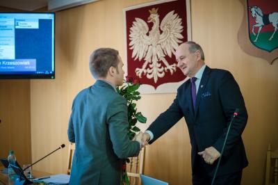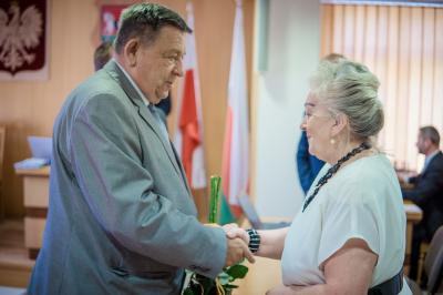 Po głosowaniu, w którym Rada Miasta jednomyślnie udzieliła burmistrzowi Stanisławowi Lichosytowi absolutorium, radni złożyli na ręce Burmistrza Miasta i Skarbnik Gminy Haliny Kozioł podziękowania oraz gratulacje.