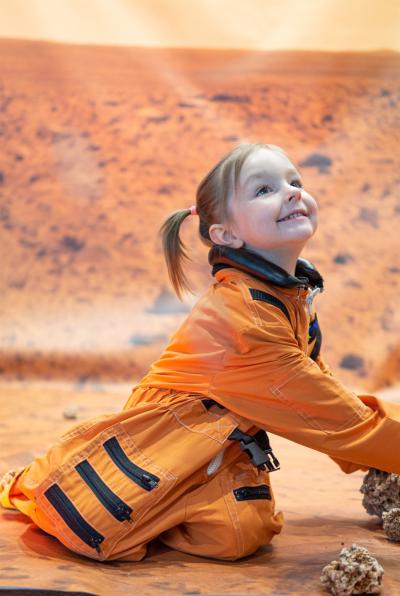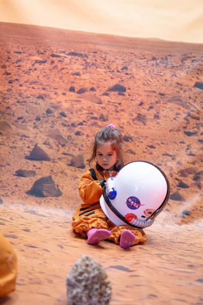 Jedna z największych niespodzianek czekała na gości w hallu. Był nią pneumatyczny model Marsa o średnicy 3,5 metra, z dokładną mapą powierzchni oraz dostępnym audio przewodnikiem (w postaci QR kodu umieszczonego na statywie). Zorganizowanie tej nietuzinkowej atrakcji, która zadziałała na wyobraźnię zarówno dzieci, jak i rodziców było możliwe dzięki nawiązaniu współpracy ze Stowarzyszeniem POLARIS – OPP, realizującym projekt „Misja po Układzie Słonecznym". Ogromnym powodzeniem cieszyły się również kosmiczne uniformy stylizowane na kombinezony astronautów z NASA oraz hełmy, w których uczestnicy mogli wykonać sobie pamiątkowe zdjęcia. Efekt był tym większy, że suscy astronauci pozowali na specjalnej dedykowanej ściance fotograficznej z panoramą marsjańską. Uniformy dostępne w różnych rozmiarach pozwoliły nawet na wykonanie pamiątkowych zdjęć całej rodziny. Dodatkowo do obejrzenia była imitacja pełnego kombinezonu na wzór Advanced Crew Escape Suit (ACES) z NASA eksponowana na manekinie.